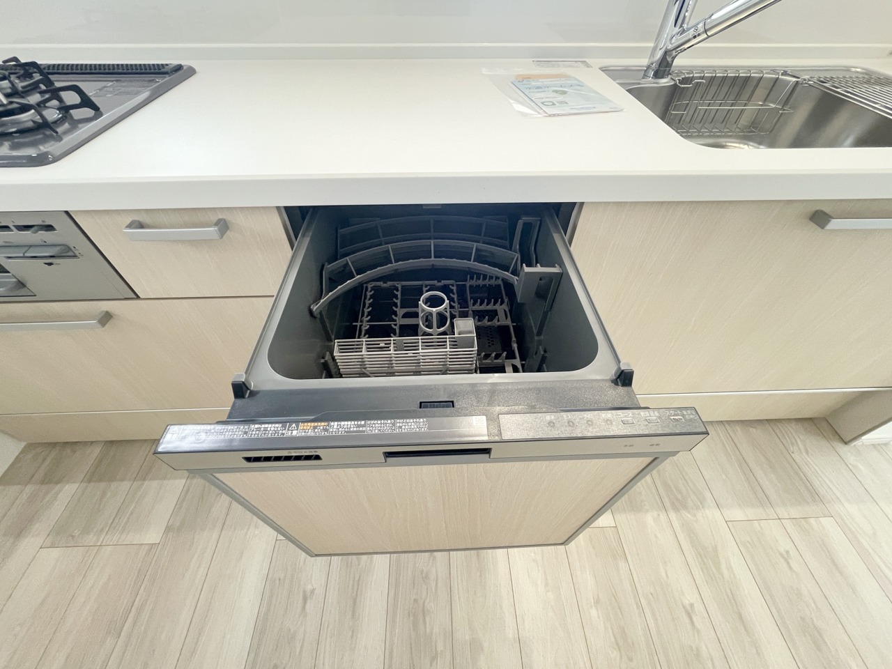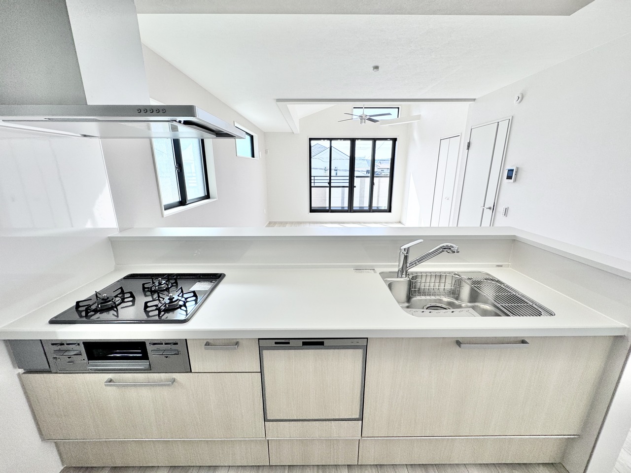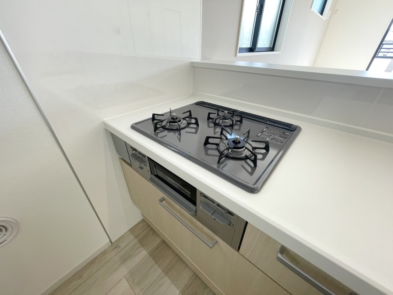 食洗機付きのシステムキッチンは、調理スペースも十分確保しており奥様も喜びます。