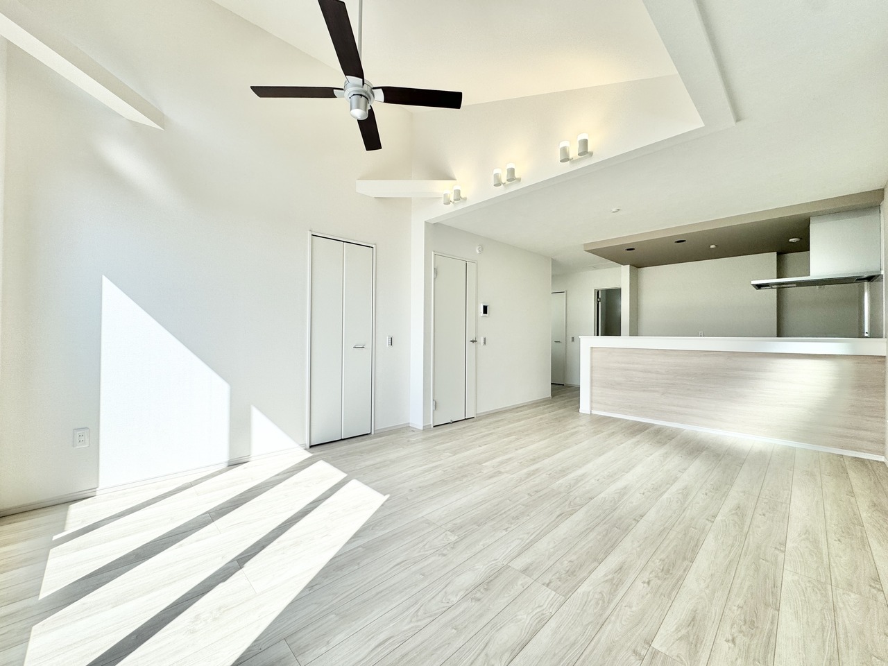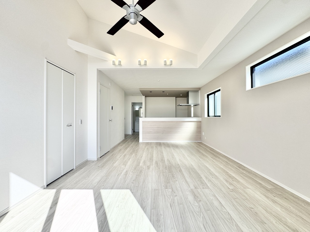 リビングの天井が高く、開放的な雰囲気を感じることができます。 完成済みのため、いつでもご見学いただけます。