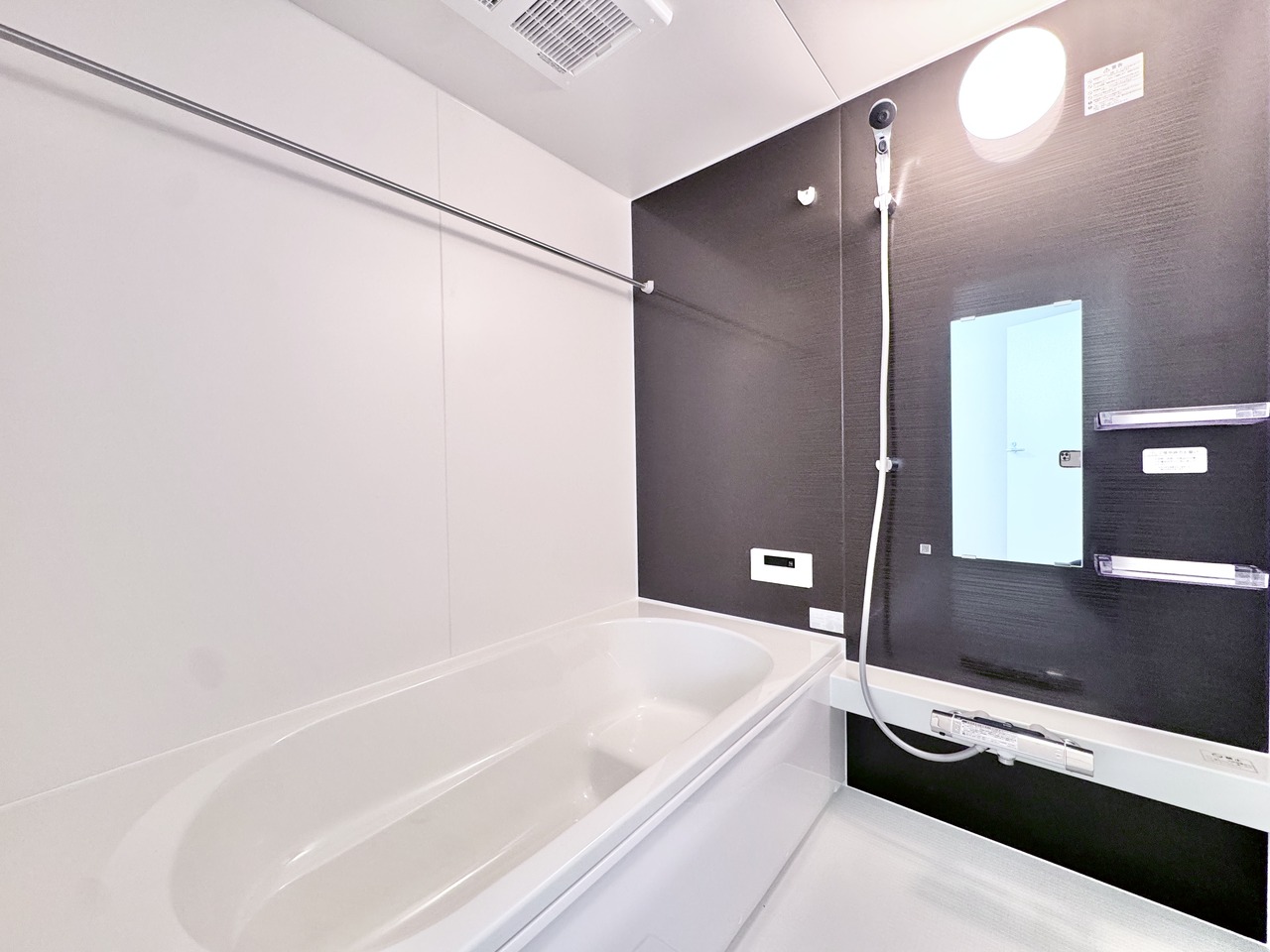 | 設備 | 公営水道、本下水、都市ガス システムキッチン(浄水器付き)・ユニットバス・浴室乾燥機付き・ウォシュレット・シャワー付き洗面化粧台・ペアガラス・テレビモニターフォン付き・全居室収納あり・床下収納あり・カースペース2台可能・庭 等 |