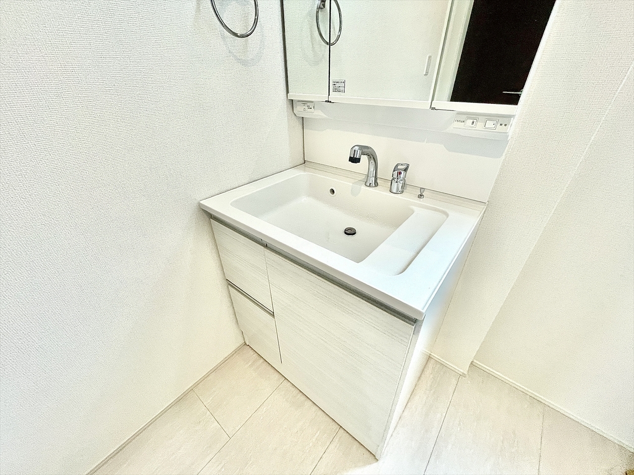 使い勝手がいい洗面台と十分な収納で家族全員が使いやすい空間になっております◎