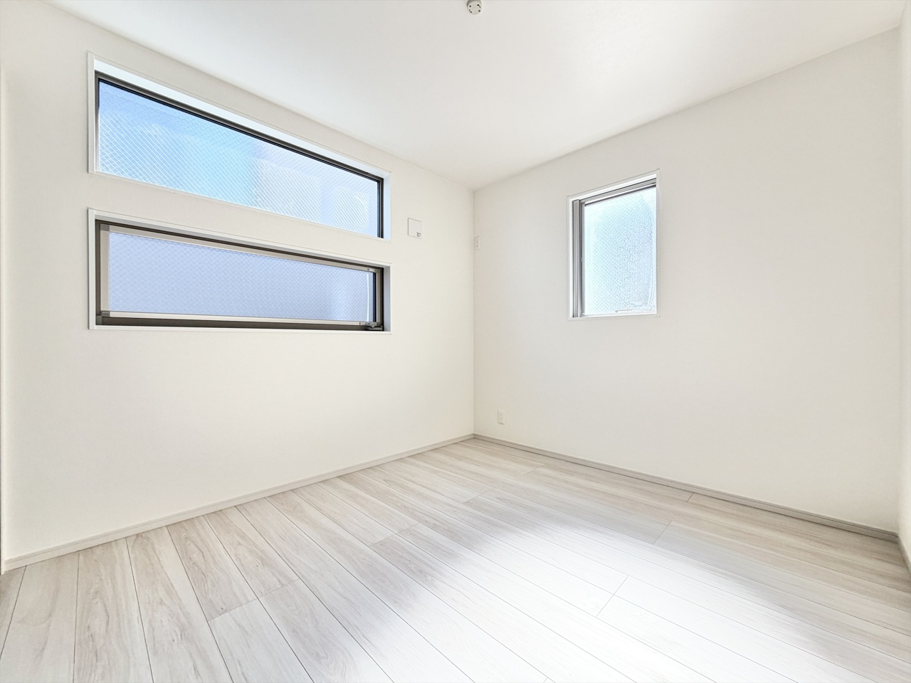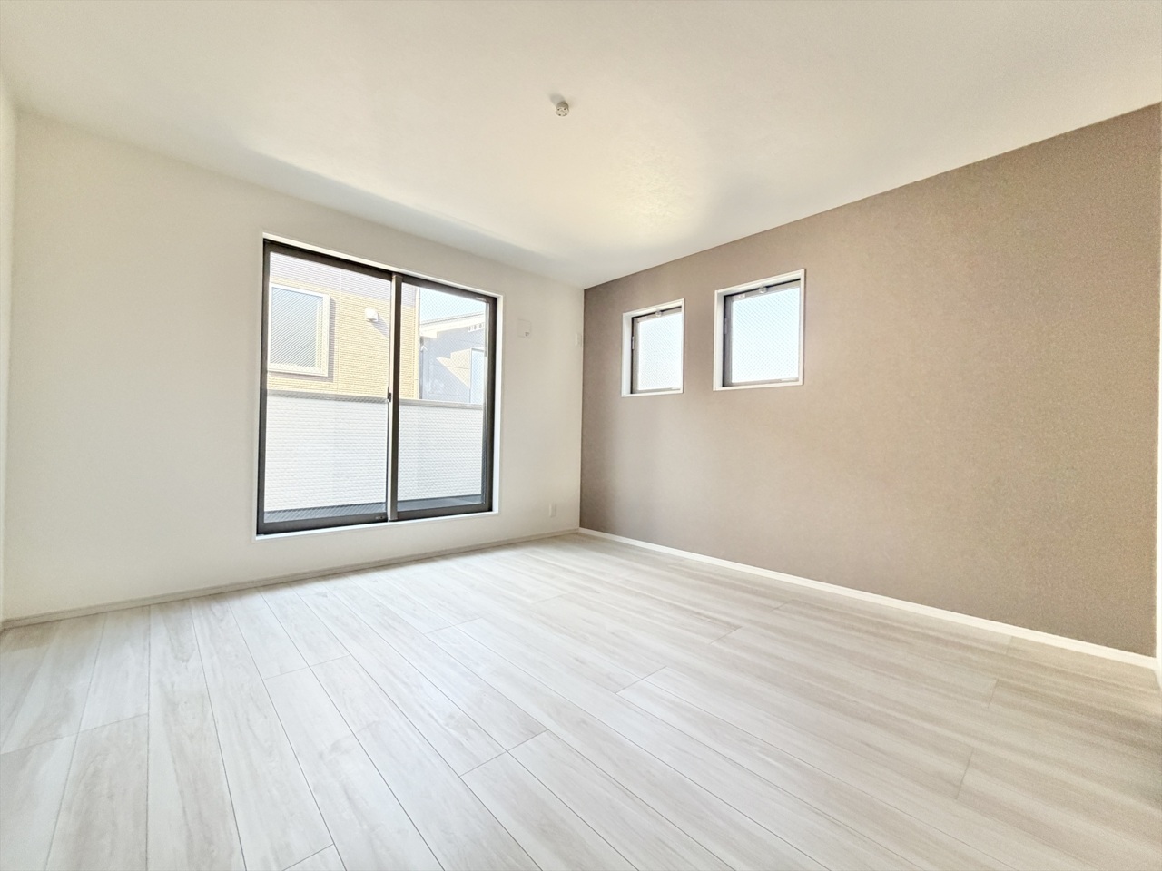 2階約5.2帖の洋室。全居室2面採光で陽当たりと開放感が良好です。建物全体が明るく感じられます。