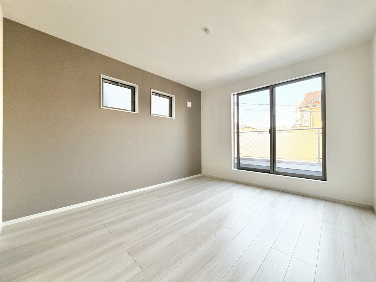 2階約7.5帖の主寝室。容量の多いWICがあります。3号棟は2箇所にバルコニーがある嬉しい設計。