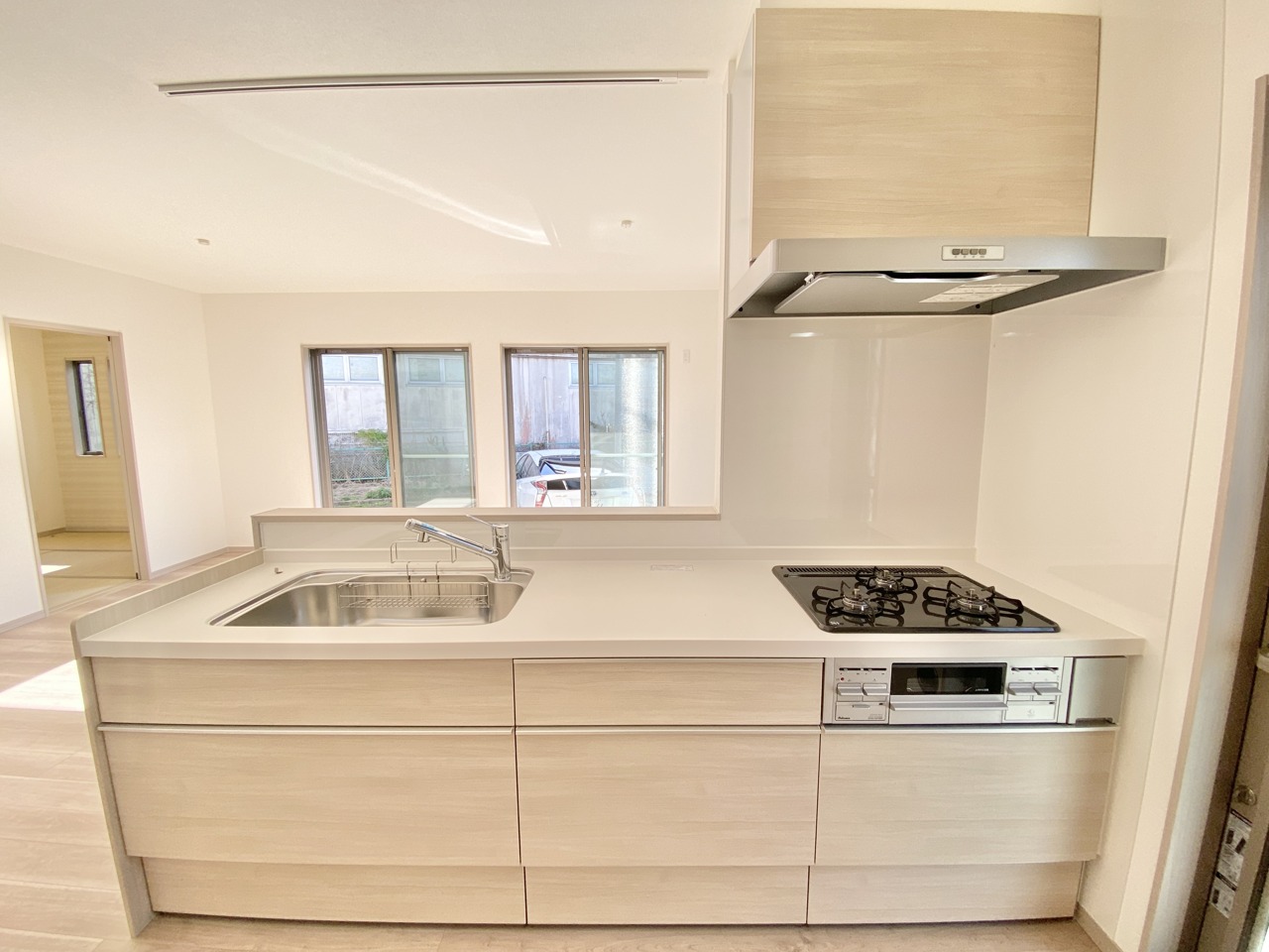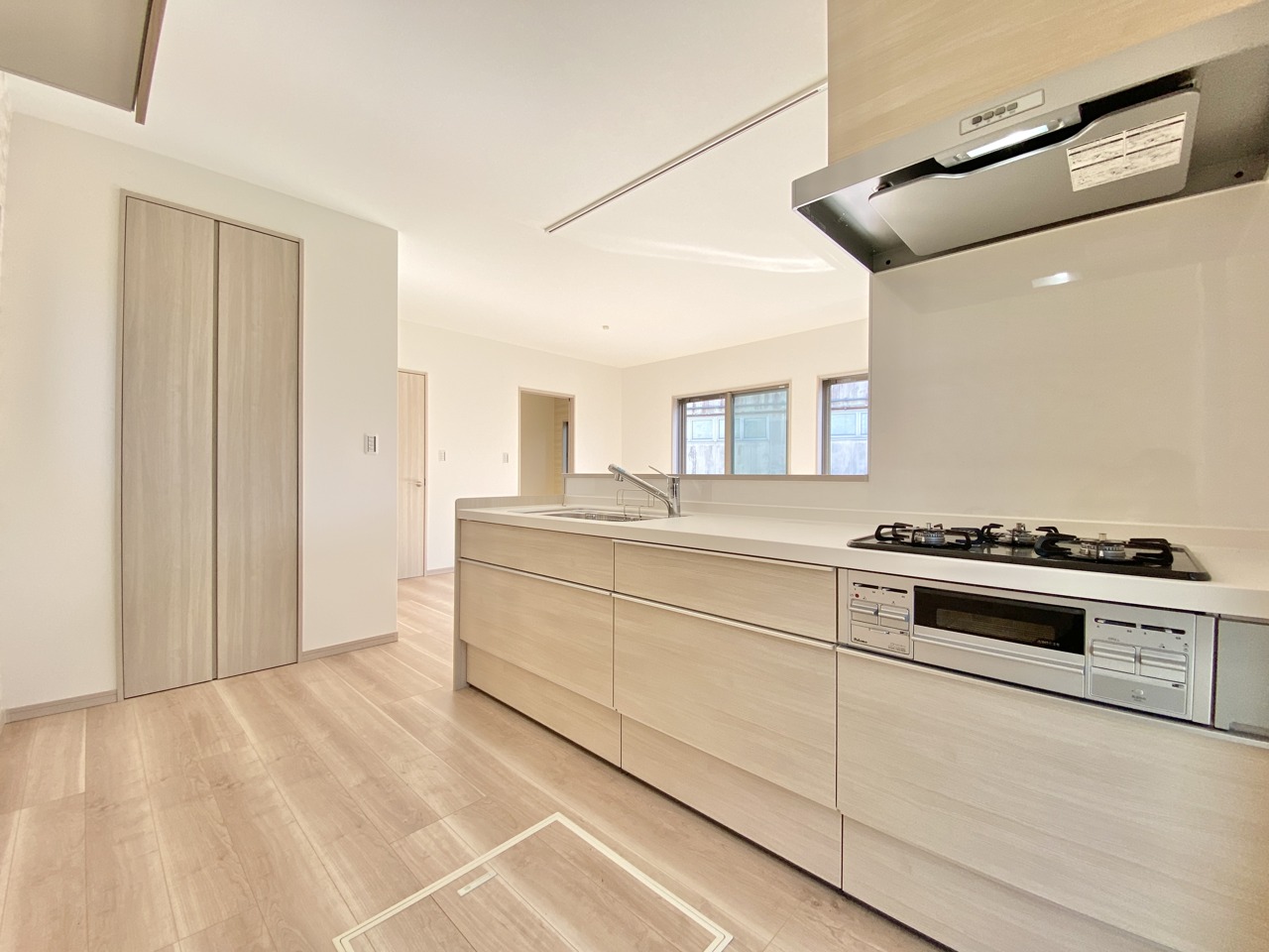対面式キッチンは家族の会話が増える素敵な空間です。こちらのキッチンで美味しいお料理と素敵な思い出をご一緒にどうぞ。