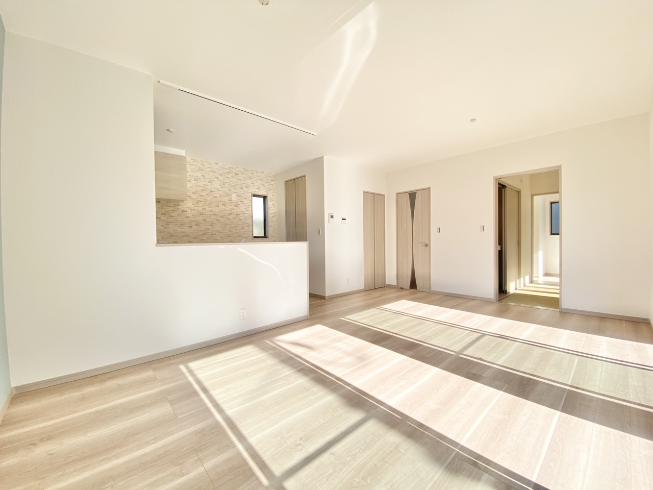 温かい日差しがLDK全体を照らしております。明るい住宅は自然と気持ちまで明るくなってきそうです。