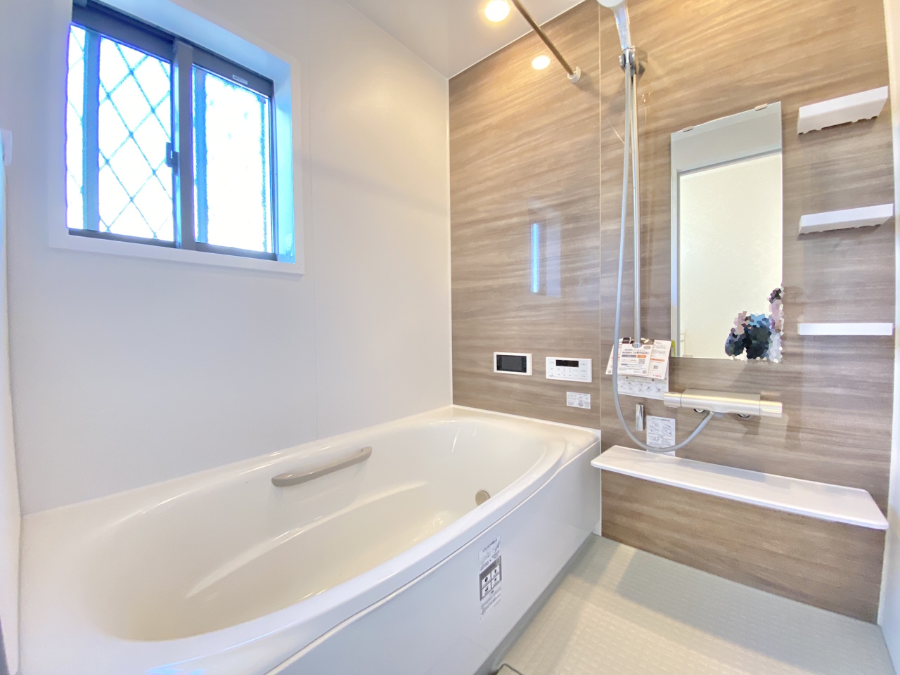 浴室は白を基調とした中に木目調の落ち着く空間となっております。また、浴室乾燥機もございますので雨の際のお洗濯物も比較的安心です。