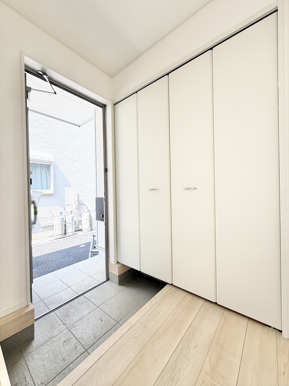 2号棟 玄関には収納スペースがあるため、来客時にもスッキリ整頓していただけます。
