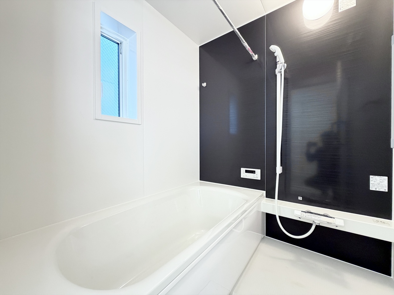 2号棟 換気暖房乾燥機付きユニットバスでは、花粉の時期でも気にせず洗濯物を干すことができます。