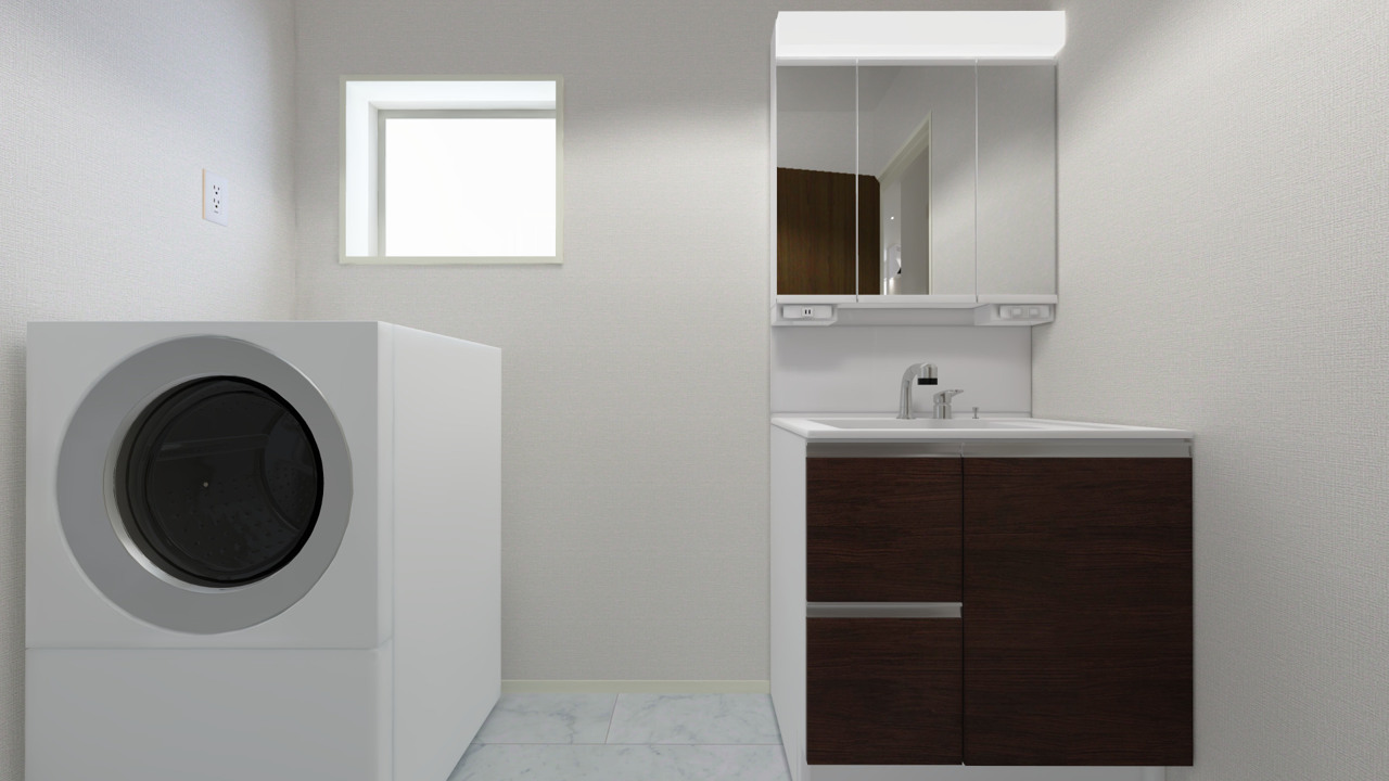 洗面脱衣室は廊下から、キッチンからの導線があります。