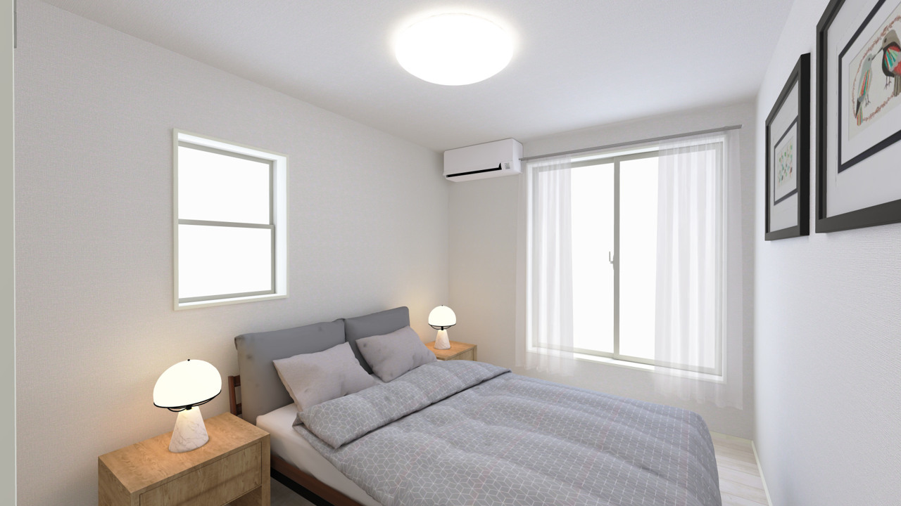 主寝室は2階、6.2帖のお部屋。バルコニーに面している明るいお部屋です。