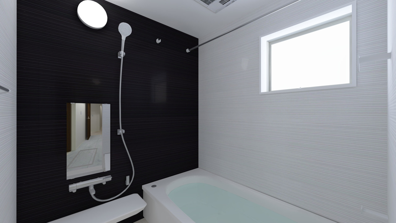 浴室は、雨の日でも洗濯物を干す場所に困らない浴室乾燥機付き◎