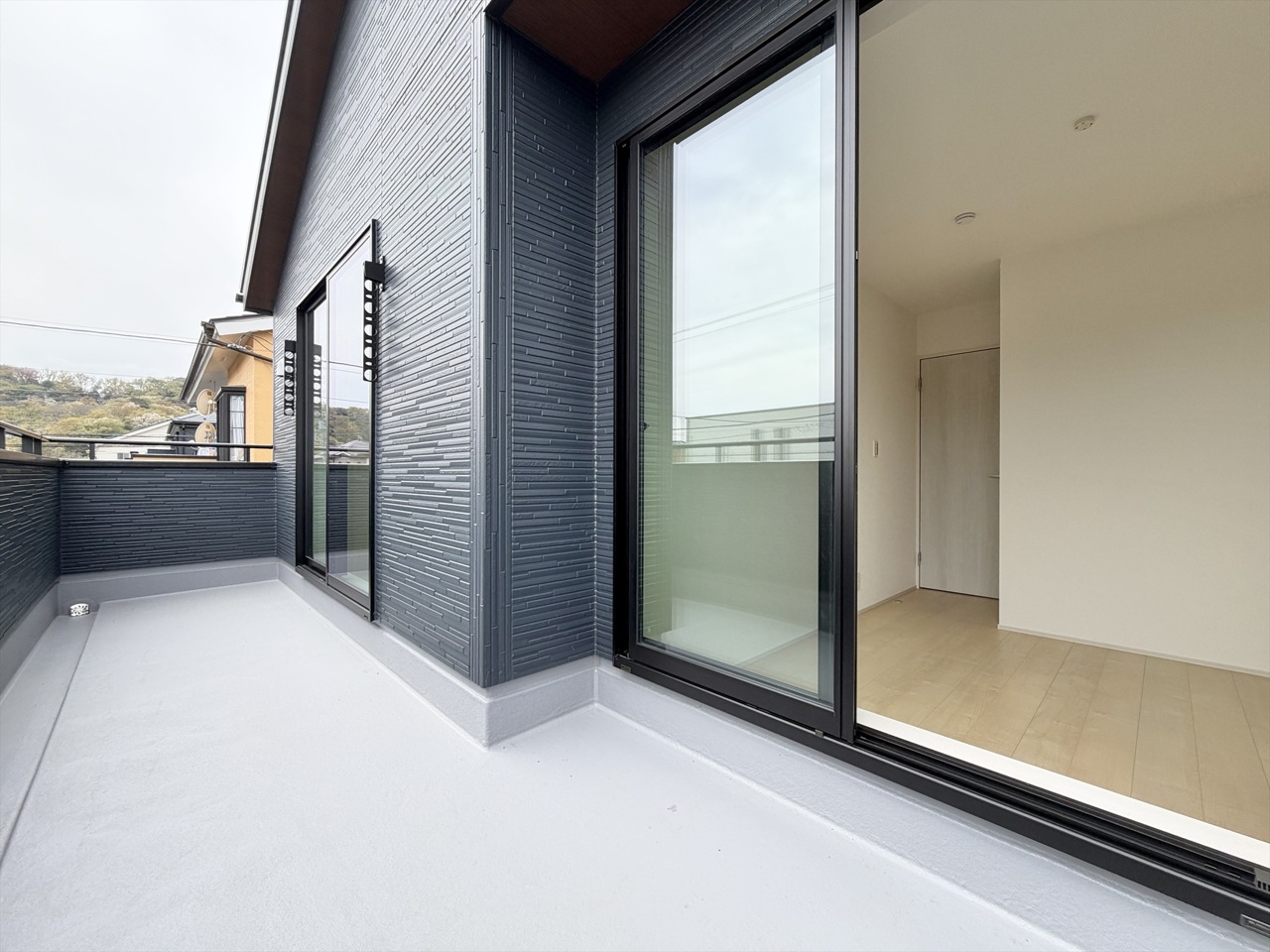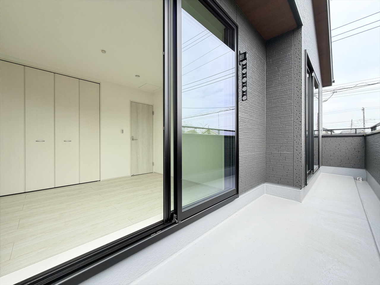 1号棟 2部屋行き来できるワイドなバルコニーは南向きの為陽当たり良好◎