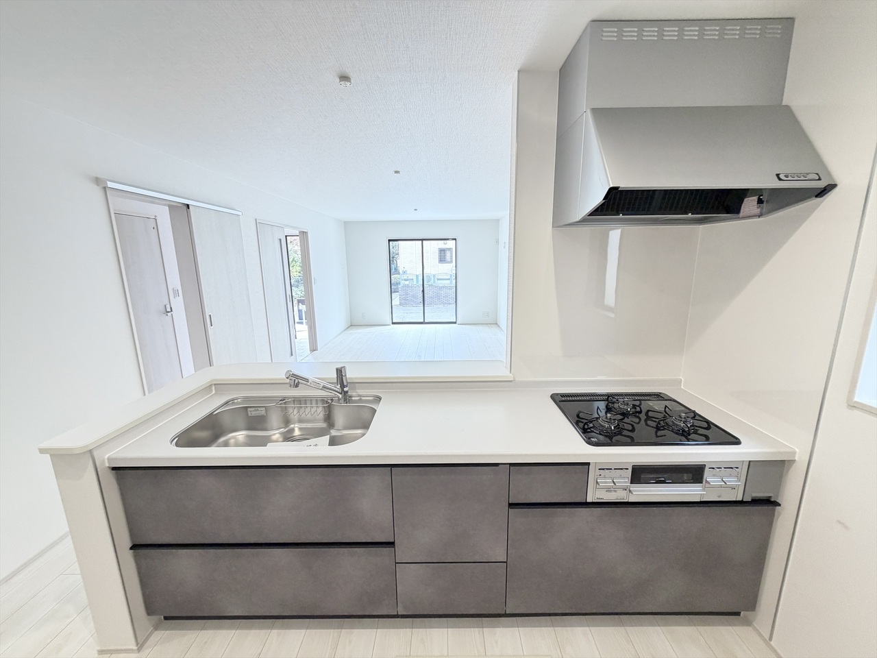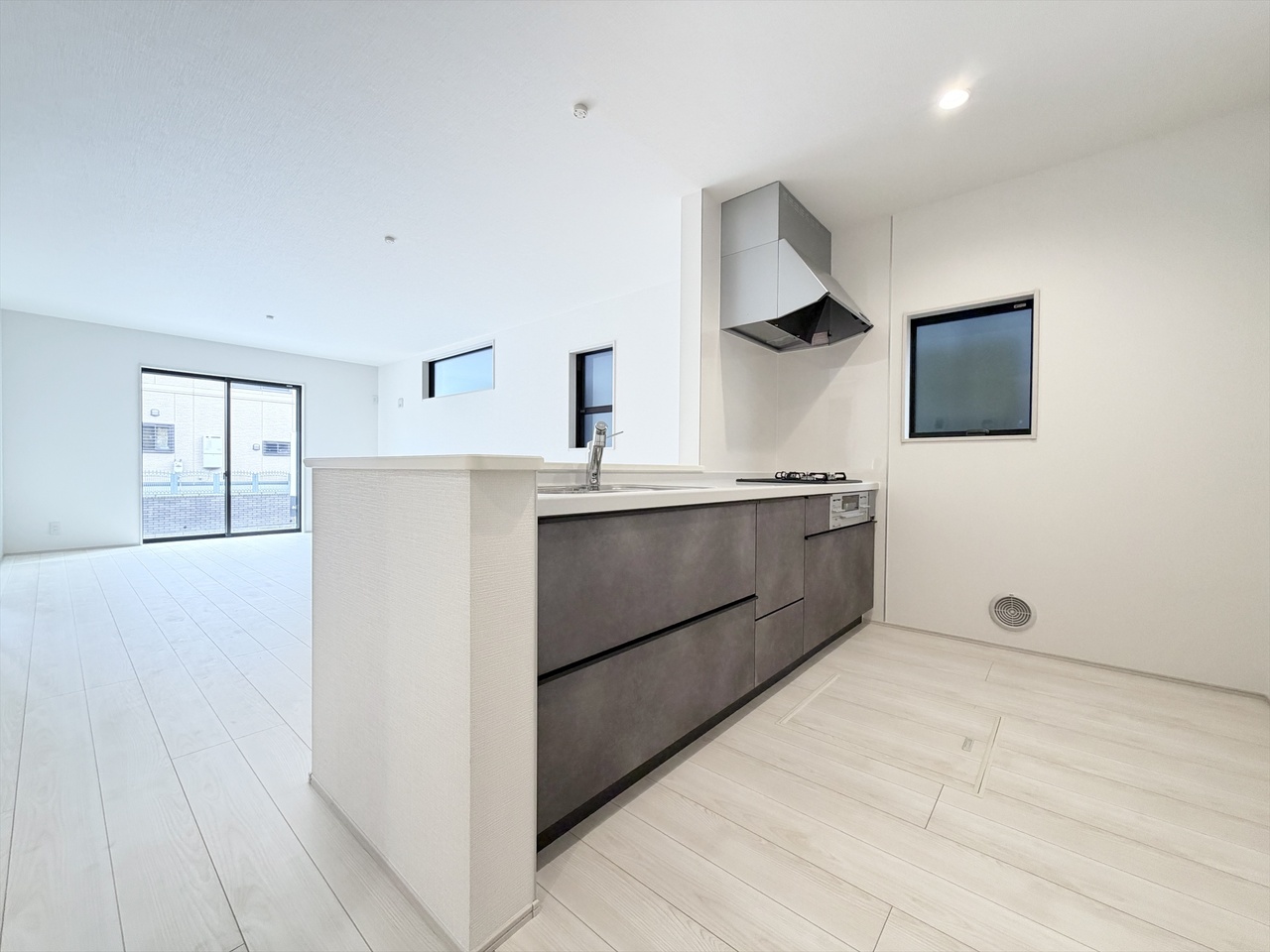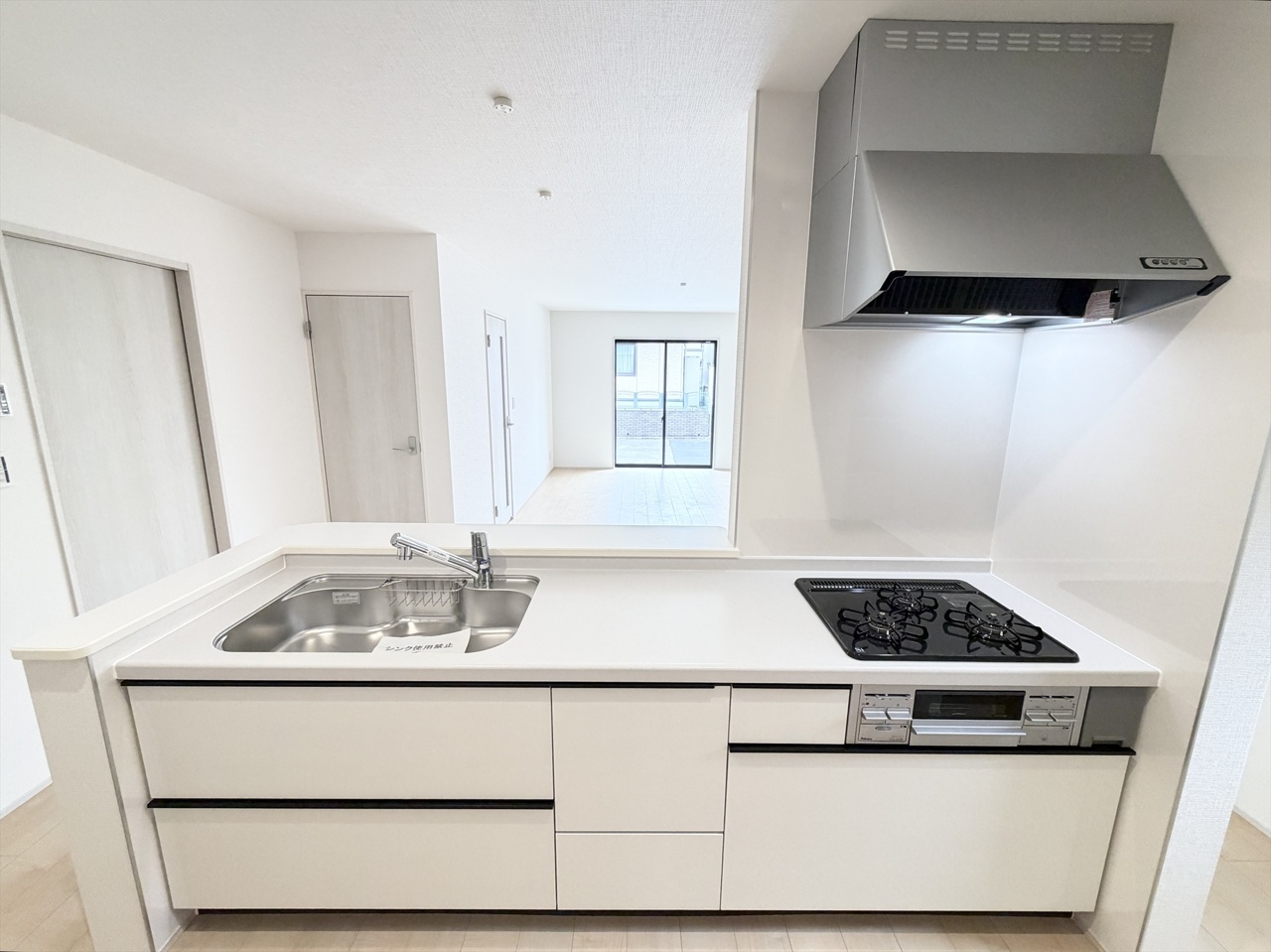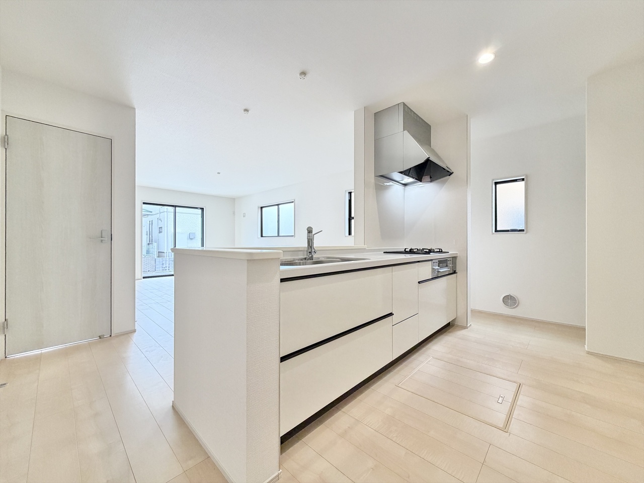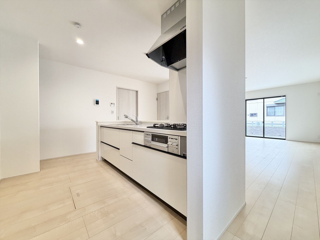 1号棟 料理をしながらリビングにいる家族との会話を楽しめるカウンターキッチン。