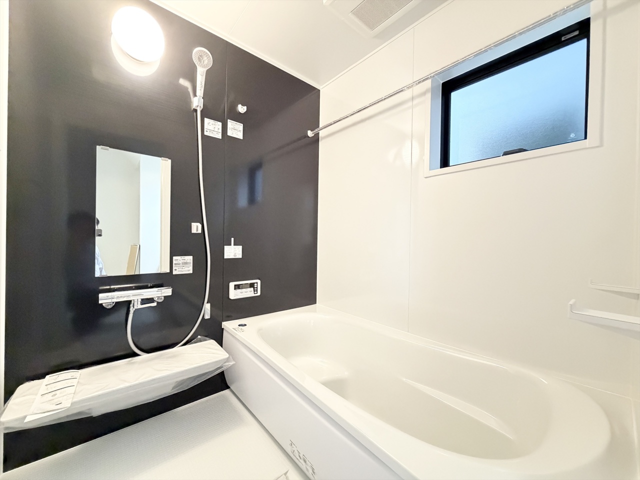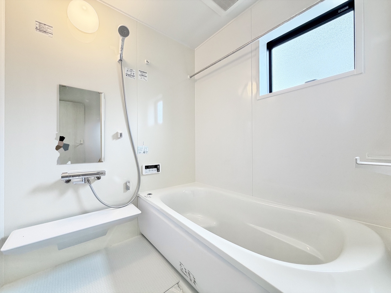 【サンプル】■浴室乾燥機付きユニットバス(追炊き付き) ユニットバスは全てが浴室のために設計されているため、掃除のしやすさやカビの生えにくさ汚れにくさに特化しています。 素材は汚れが付きにくいものが使用され、お手入れが最小限に抑えられる浴室となっております。