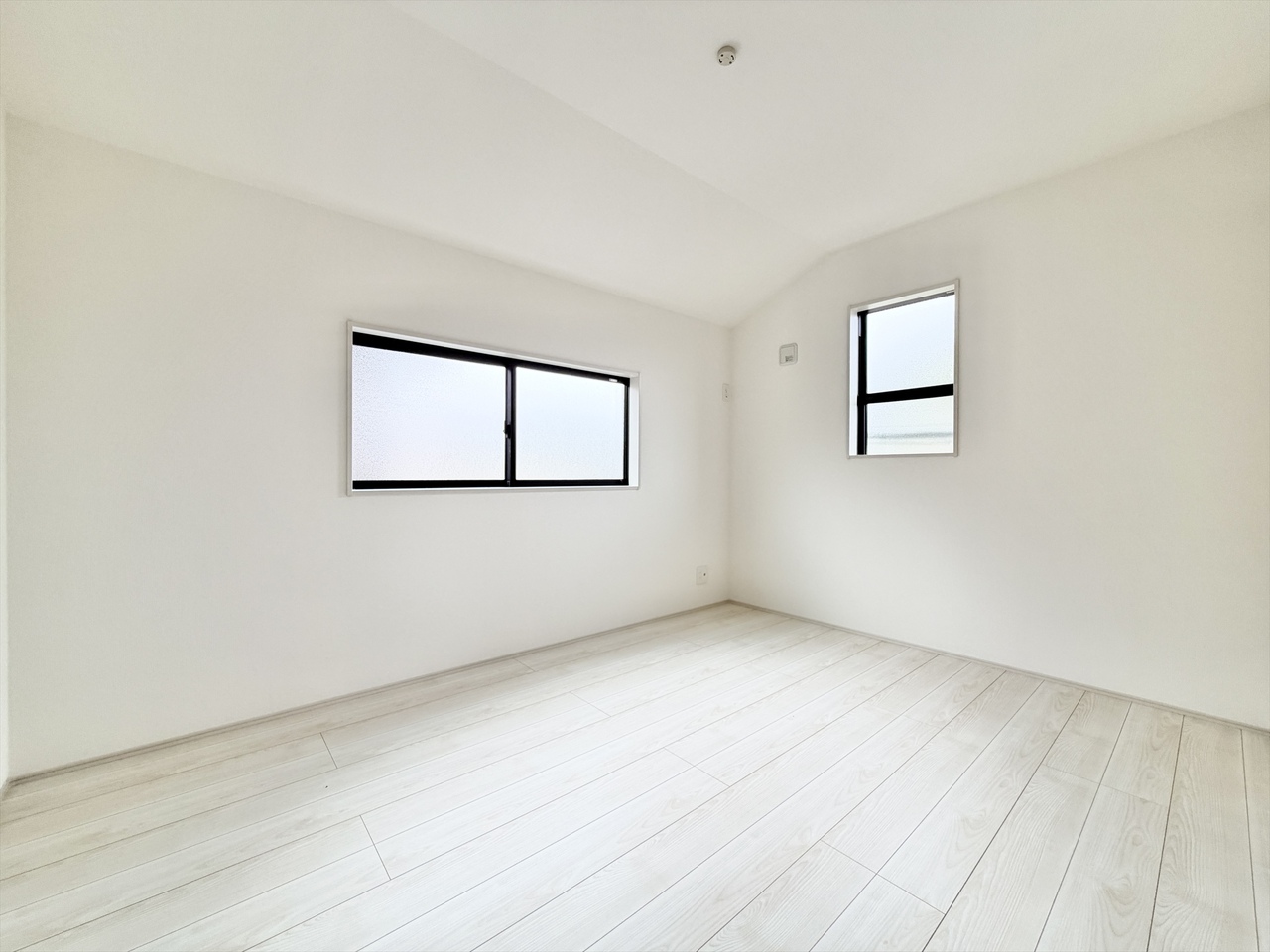 1号棟 2階洋室6帖のお部屋は屋根形状に合わせた天井のため、お部屋が広く感じられます。