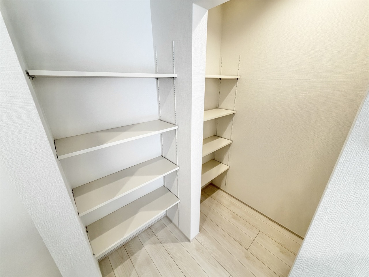 1号棟 あると嬉しいキッチン横パントリー♪食材のストック等にもとても便利です。