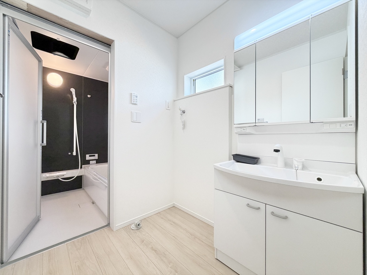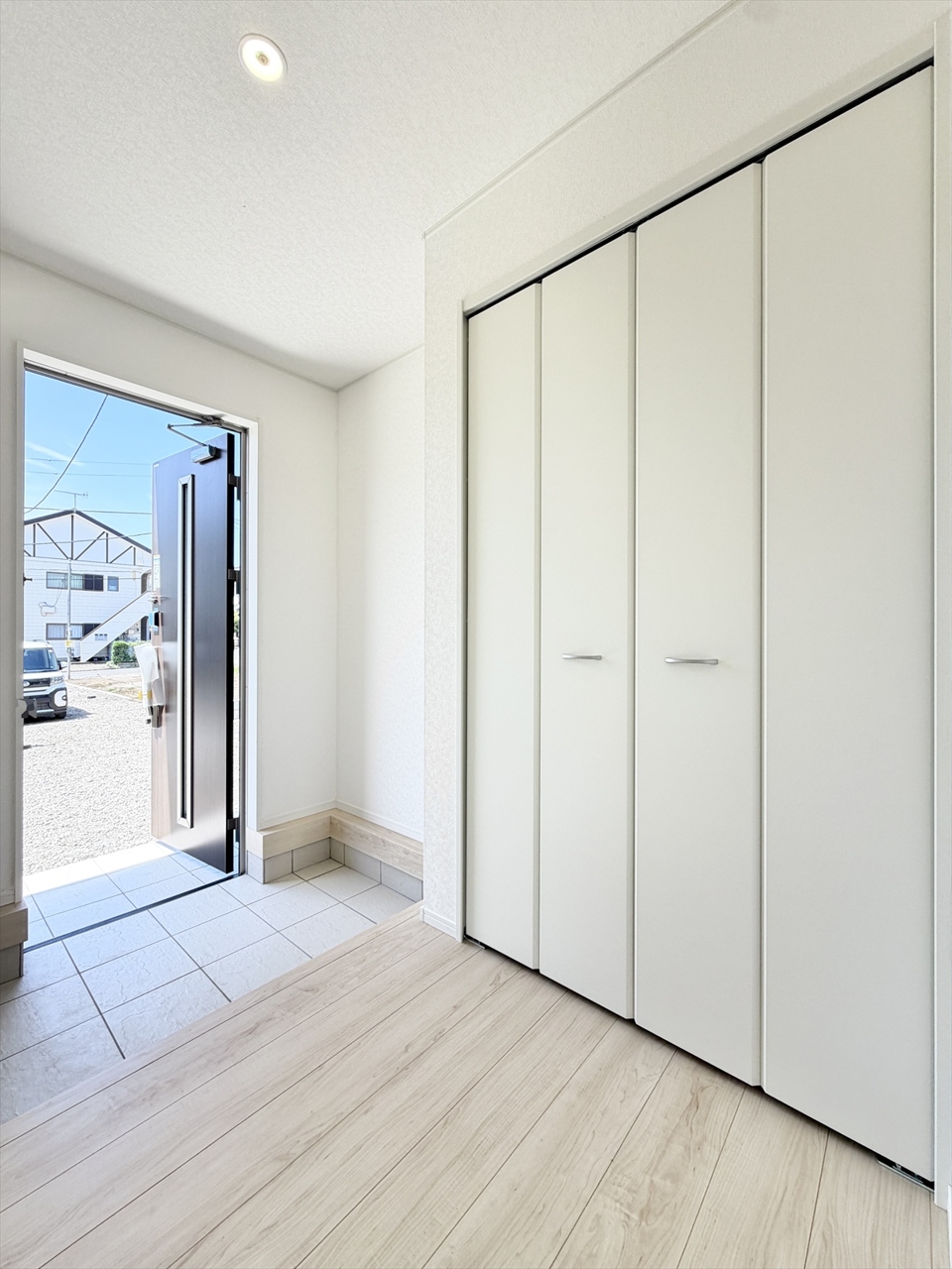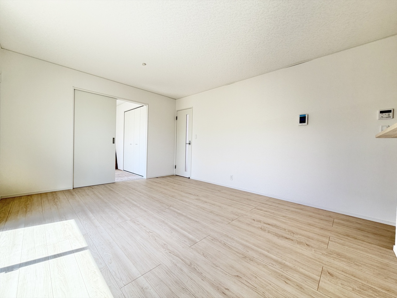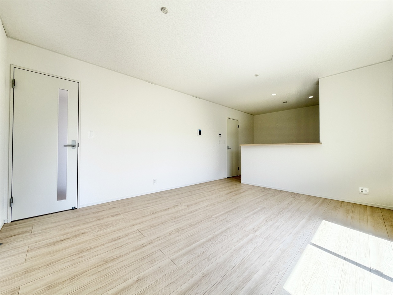 2号棟 「やわらかな光が広がる、家族の時間をそっと包む明るい洋室。朝の支度も気持ちよく進む、心地よい暮らしを叶える住まいです。」