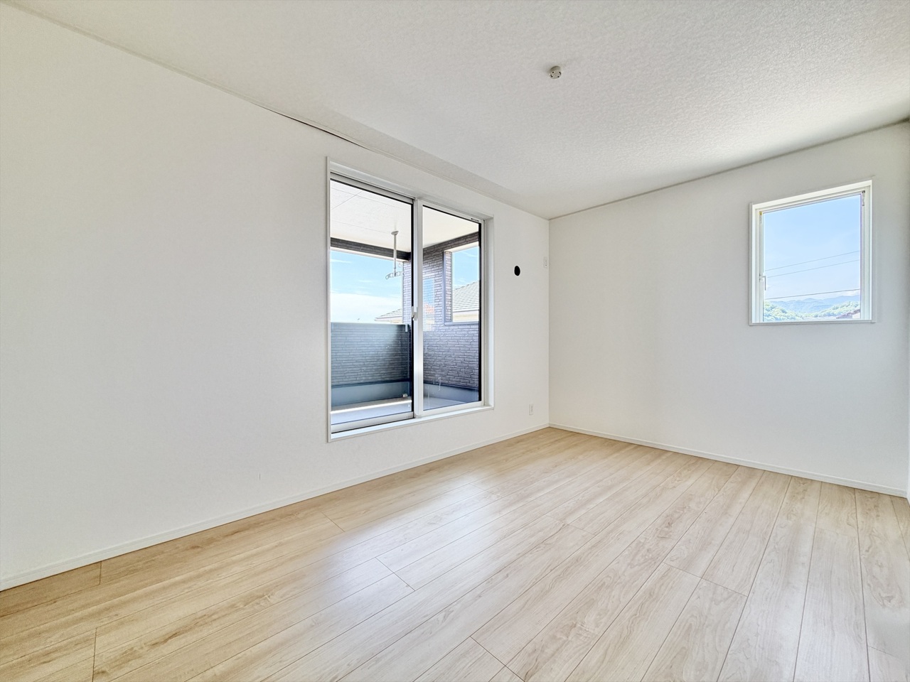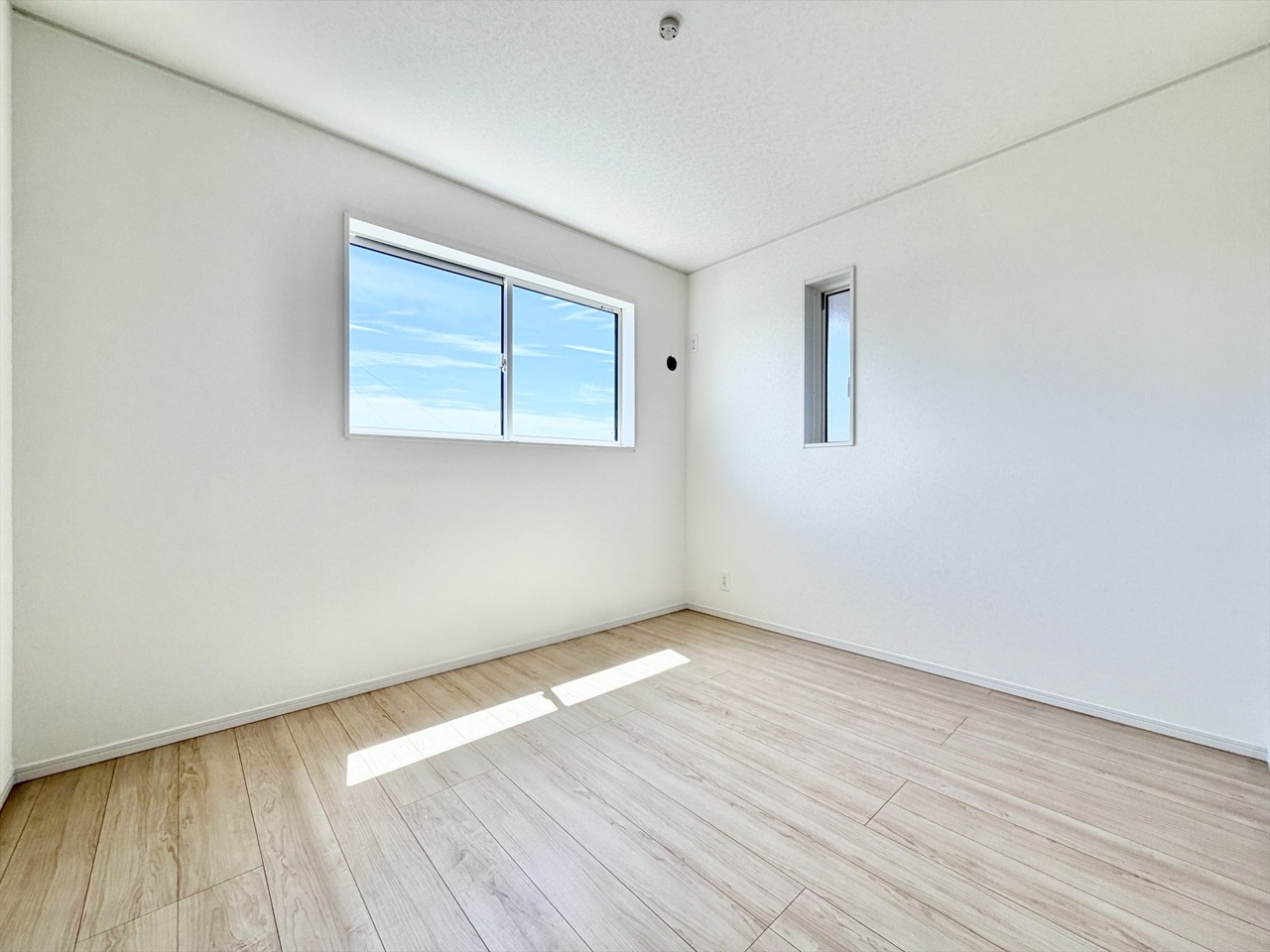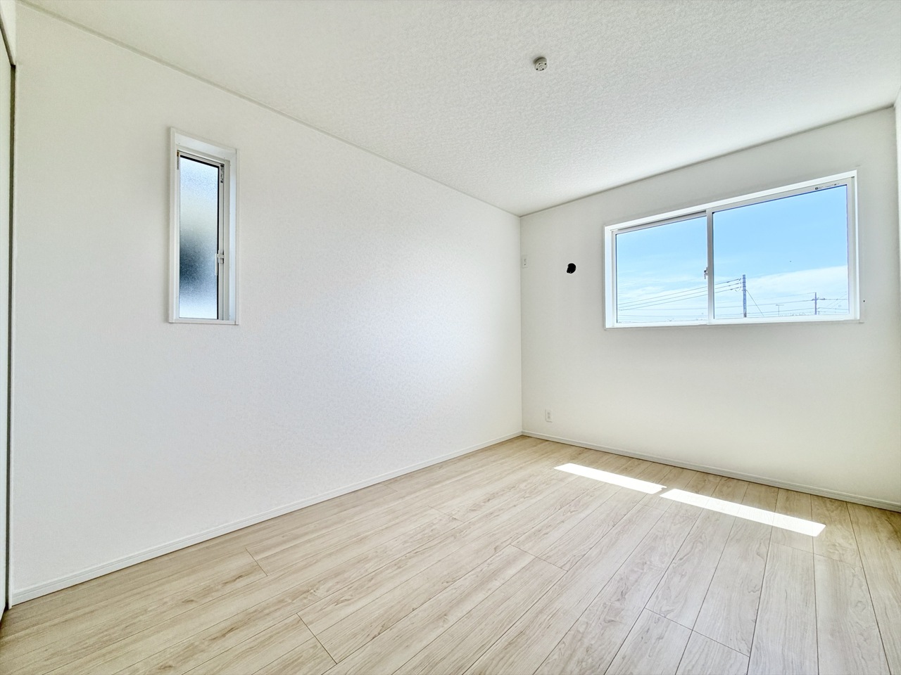2号棟 大きな窓から自然光が差し込む、明るく開放的な洋室。家具の配置がしやすいシンプルな間取りで、寝室や子ども部屋、ワークスペースなど多用途にお使いいただけます。