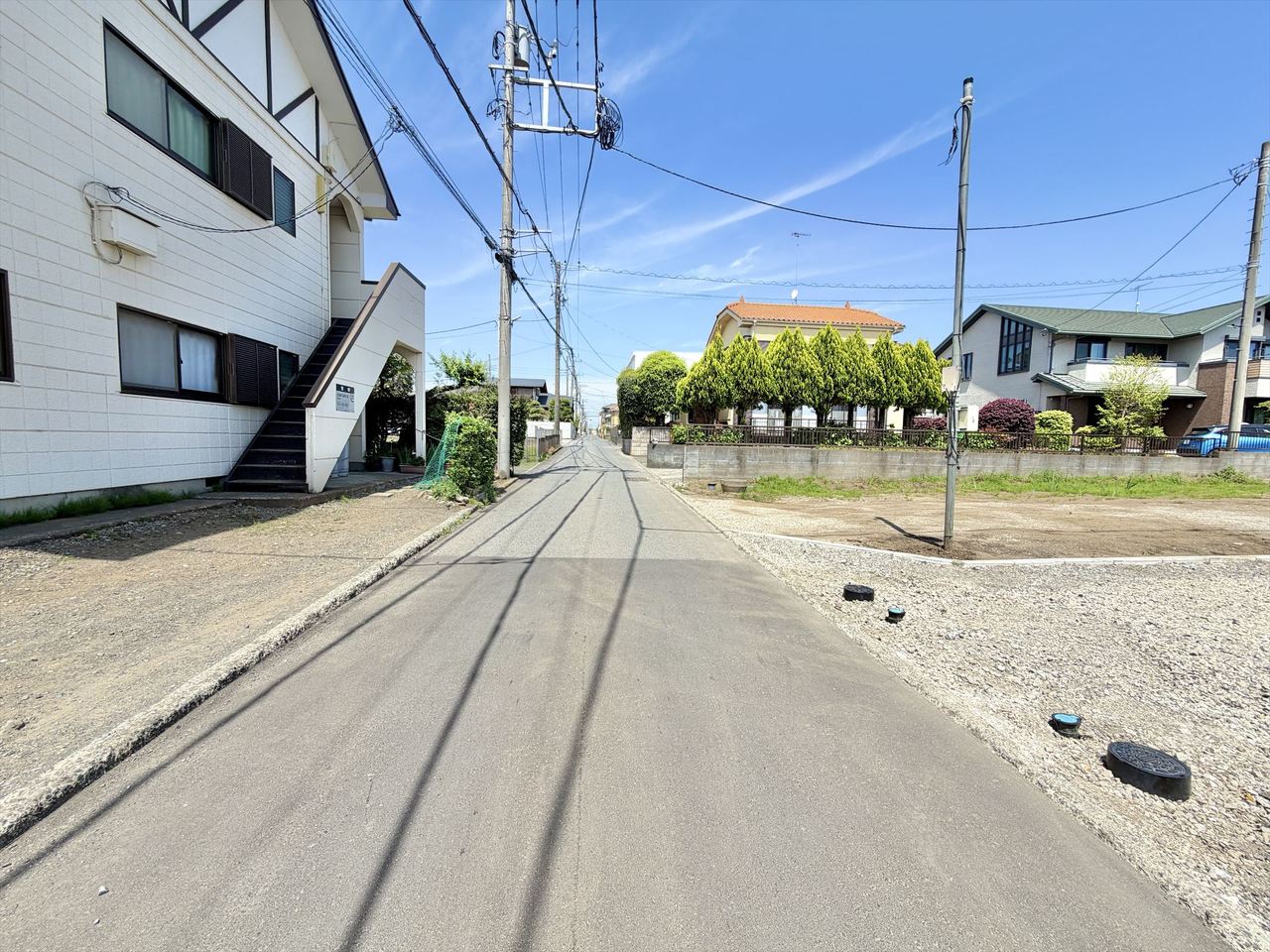 2号棟 前面は比較的交通量の少ない道路となっておりますので駐車の際も落ち着いて運転することが出来そうです。