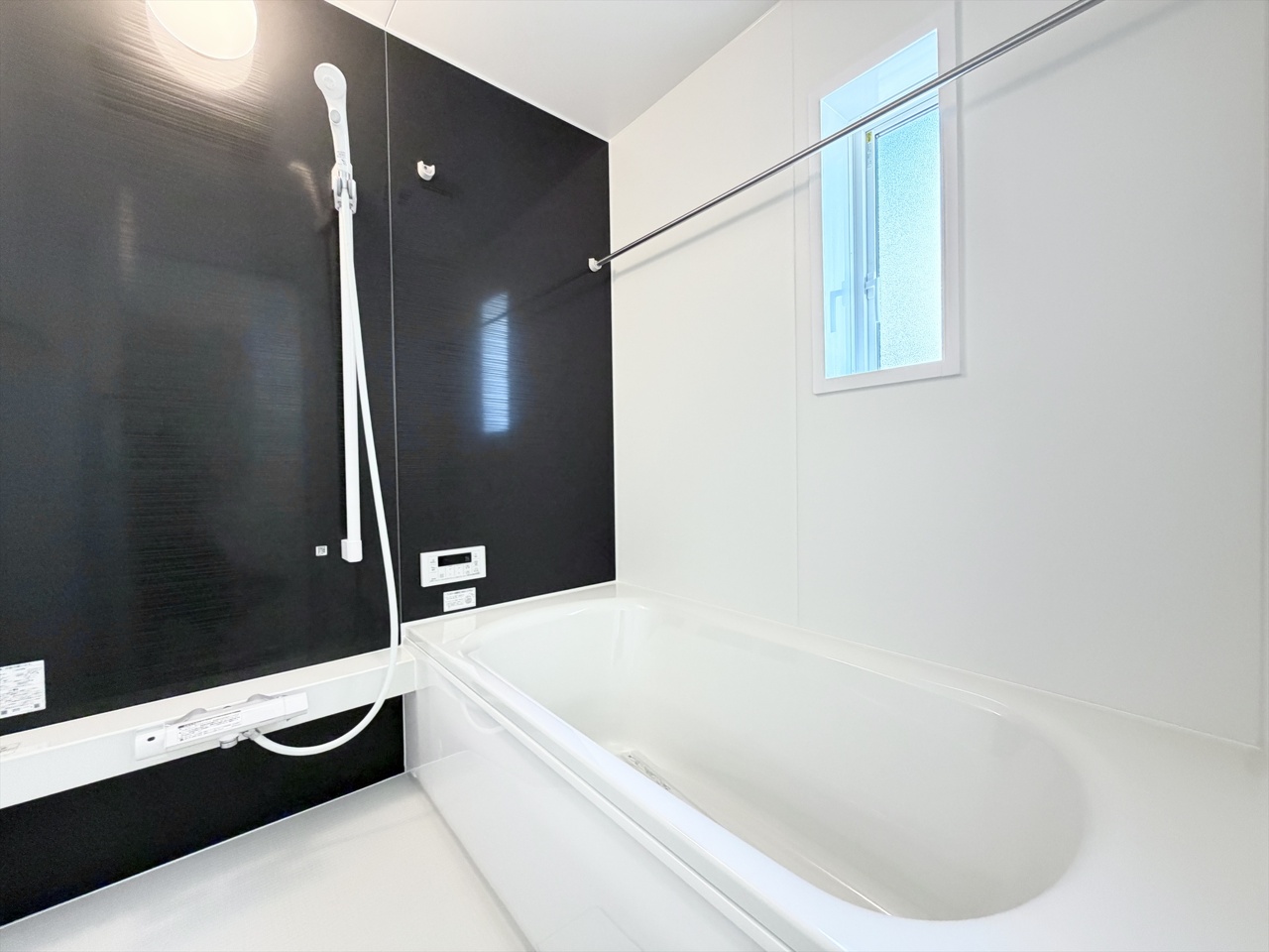 2号棟 ■浴室乾燥機付きユニットバス(追炊き付き) ユニットバスは全てが浴室のために設計されているため、掃除のしやすさやカビの生えにくさ汚れにくさに特化しています。 素材は汚れが付きにくいものが使用され、お手入れが最小限に抑えられる浴室となっております。