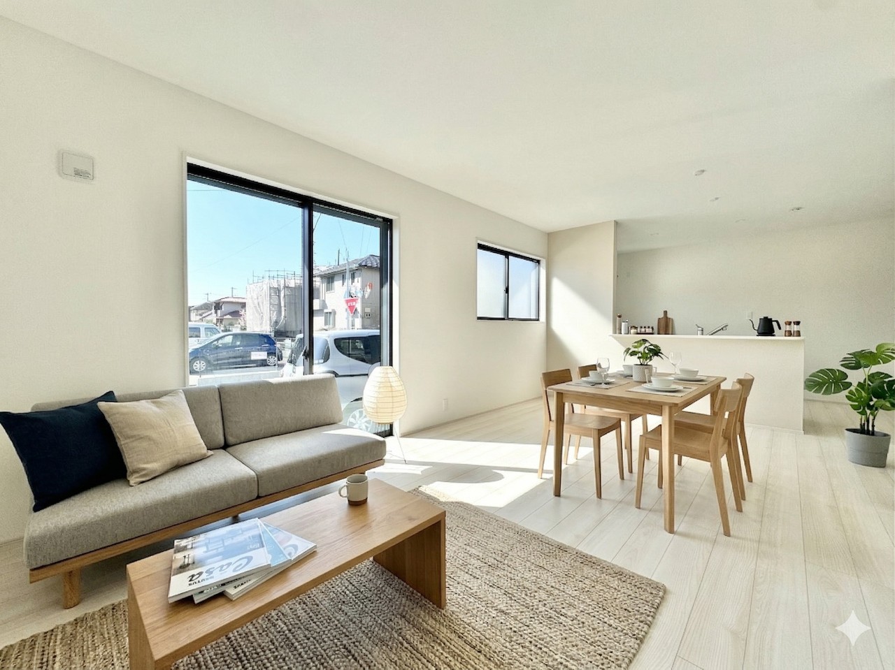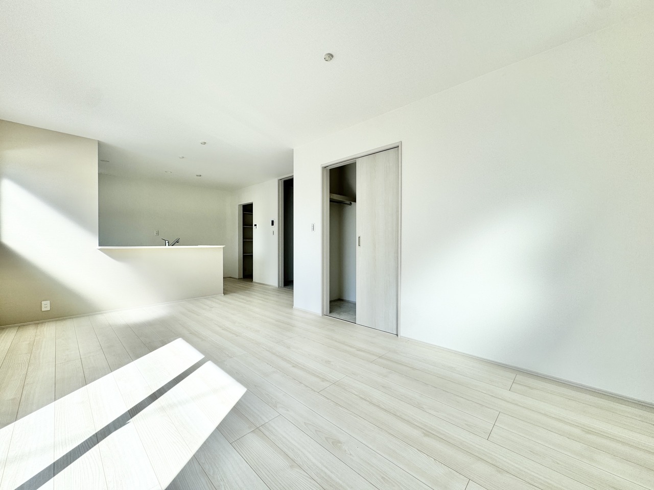 LDKは約17帖の広々とした空間。南向きで陽当たり良好で大きい窓で開放感を感じられます。