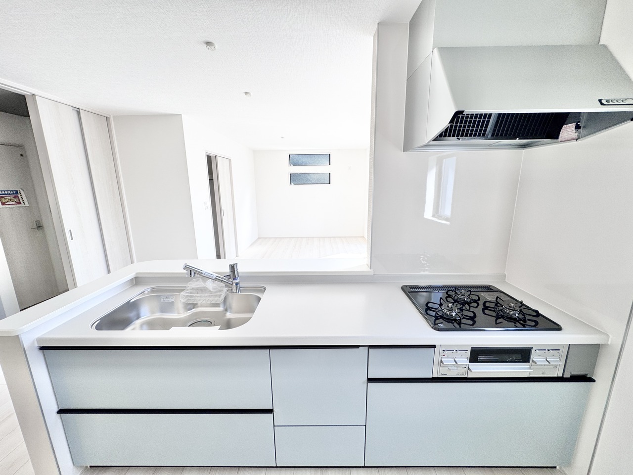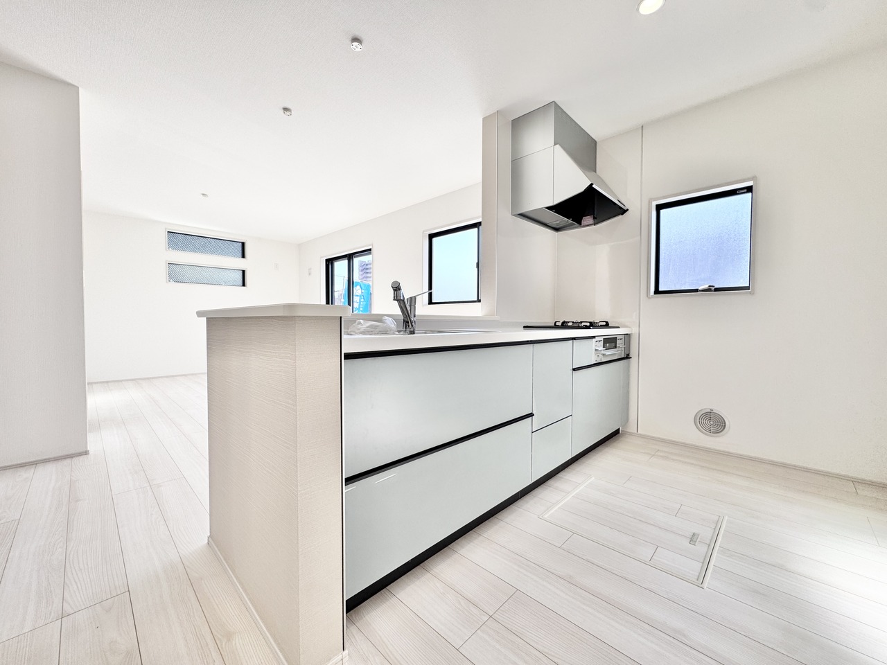 対面式キッチンは家族の会話が増える素敵な間取りです。こちらのキッチンで美味しい料理と素敵な思い出をご一緒にどうぞ。
