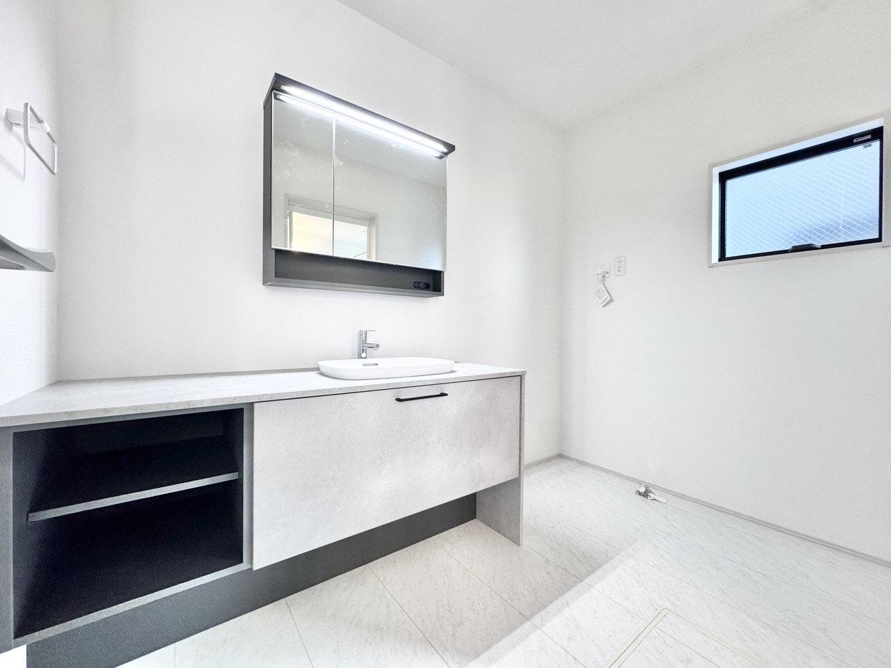 広々とした洗面スペースには造作の洗面化粧台。忙しい朝に活躍します。