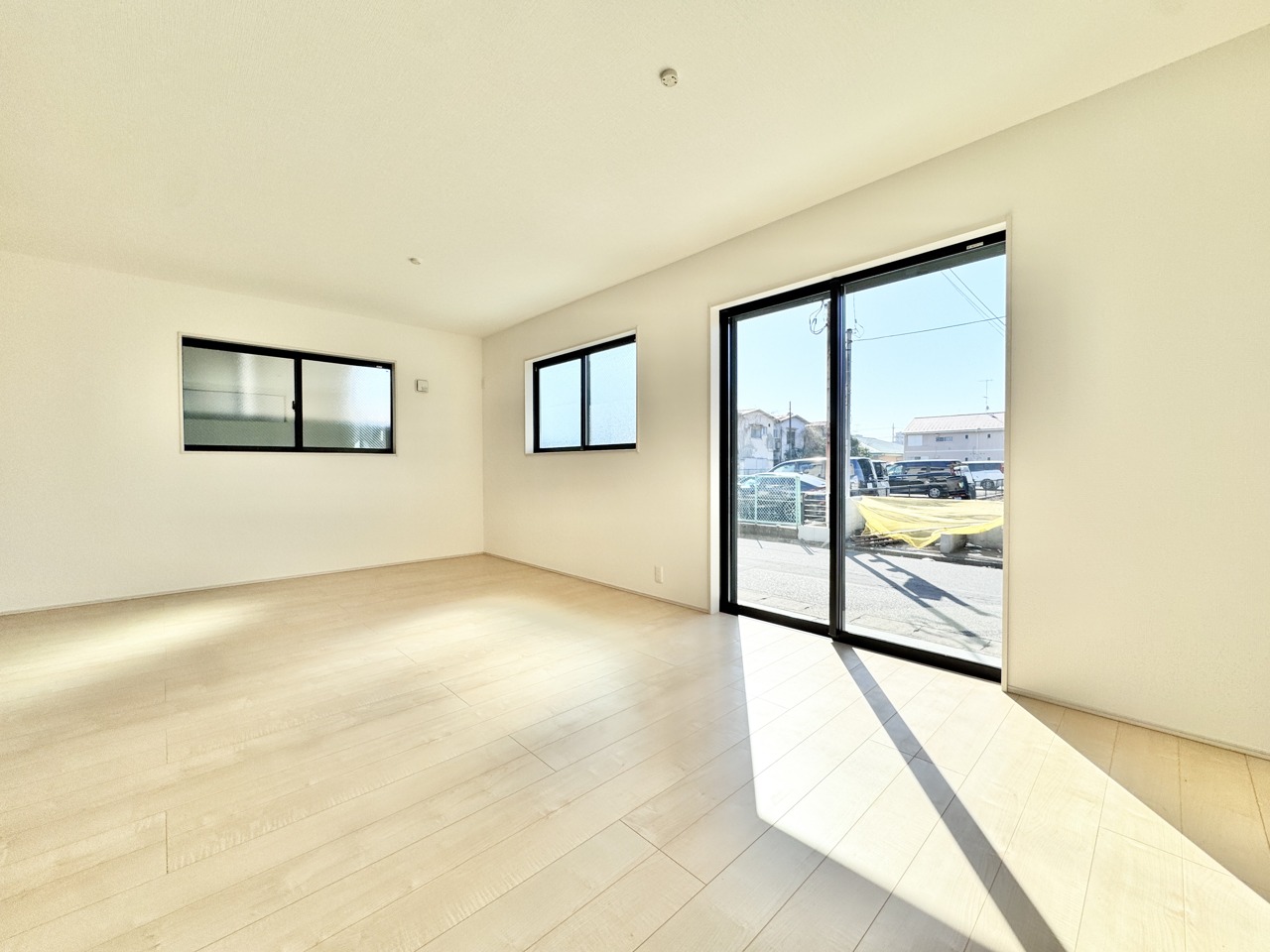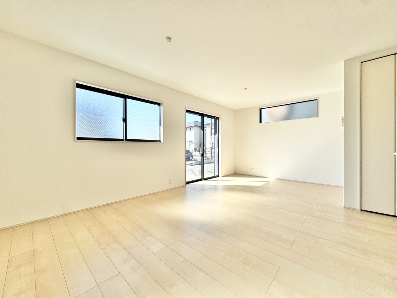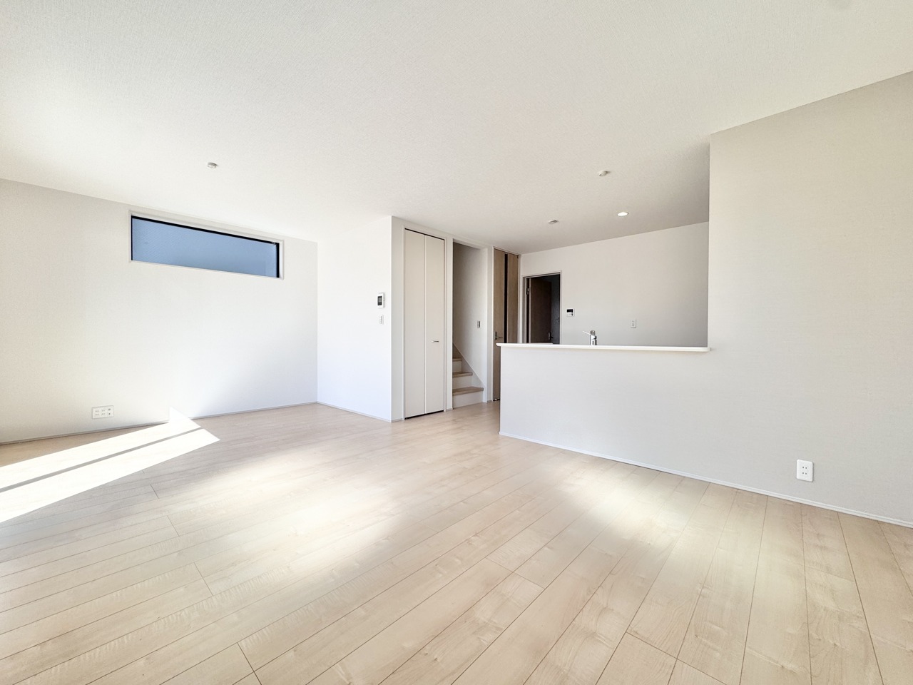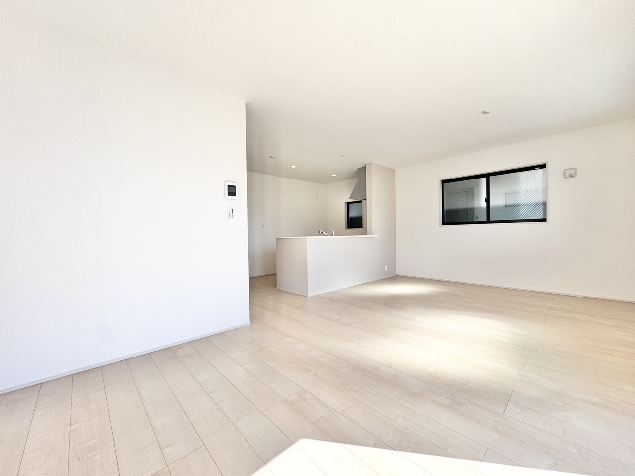 2号棟、LDK約18帖の広々とした空間。正方形で家具の配置もしやすいです。まずは一度現地をご覧になってみてください。