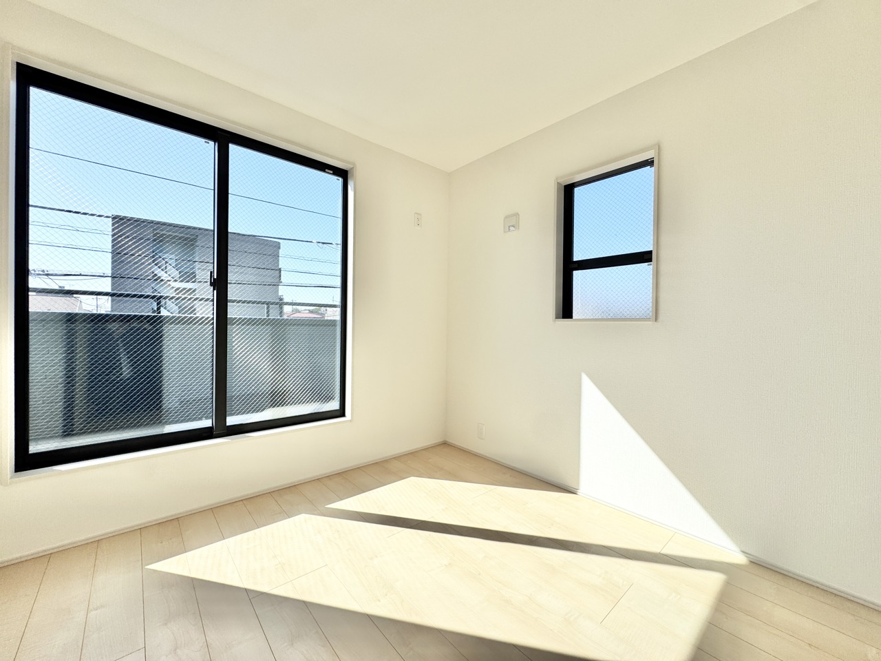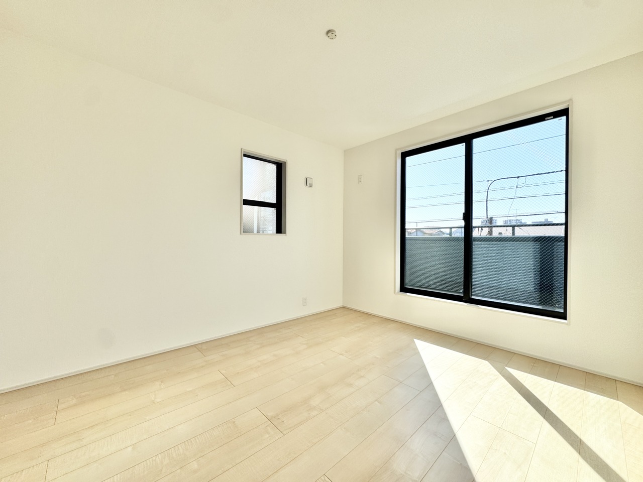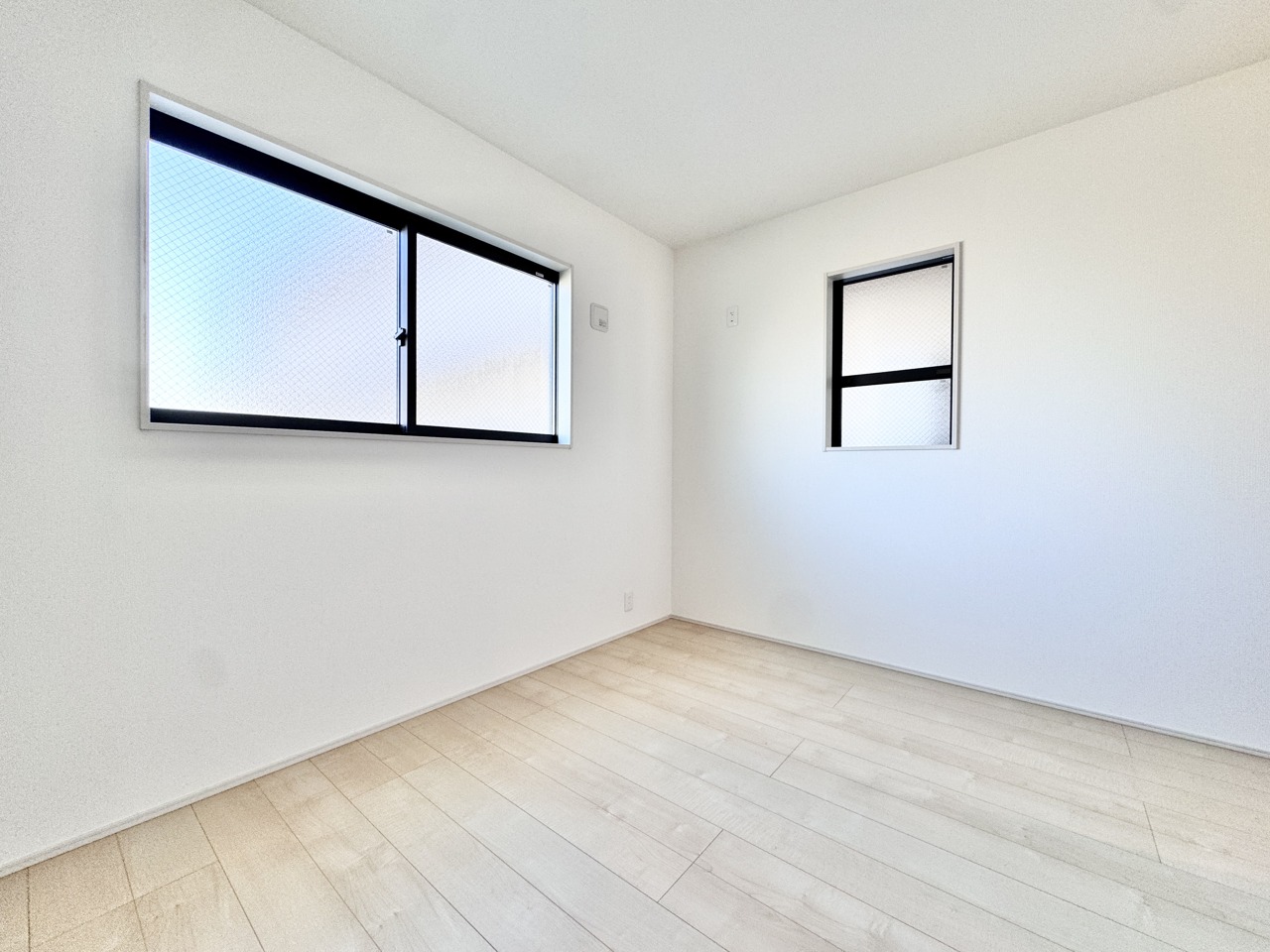 2階約5帖の洋室。全居室2面採光でお部屋と建物全体が明るく感じられます。