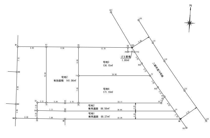 | 土地面積 | 227.62m² (路地状面積約86平米含む。) | ||