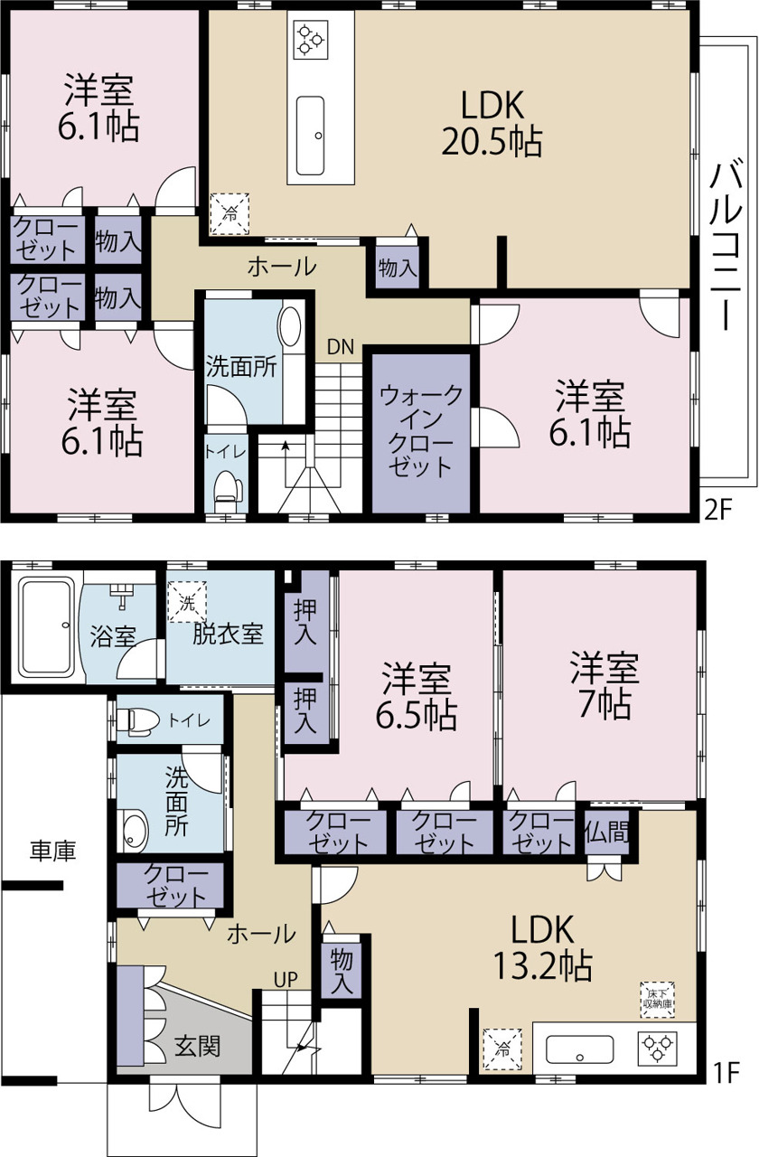 | 間取 | 5LDK (洋室7帖、洋室6.5帖、LDK13.2帖、洋室6.1帖、洋室6.1帖、洋室6.1帖、LDK20.5帖) | ||