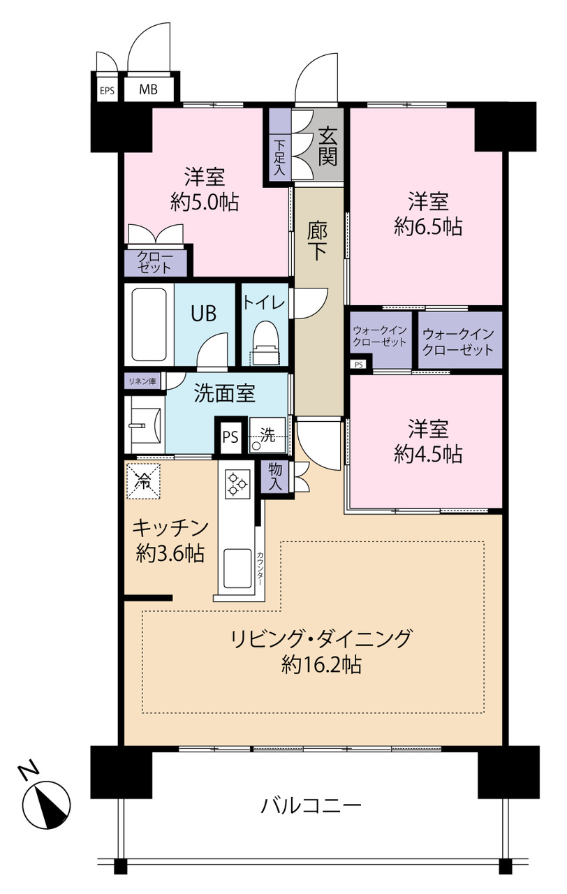 | 間取 | 3LDK (LDK19.8帖、洋室6.5帖、洋室5.0帖、洋室4.5帖) | ||