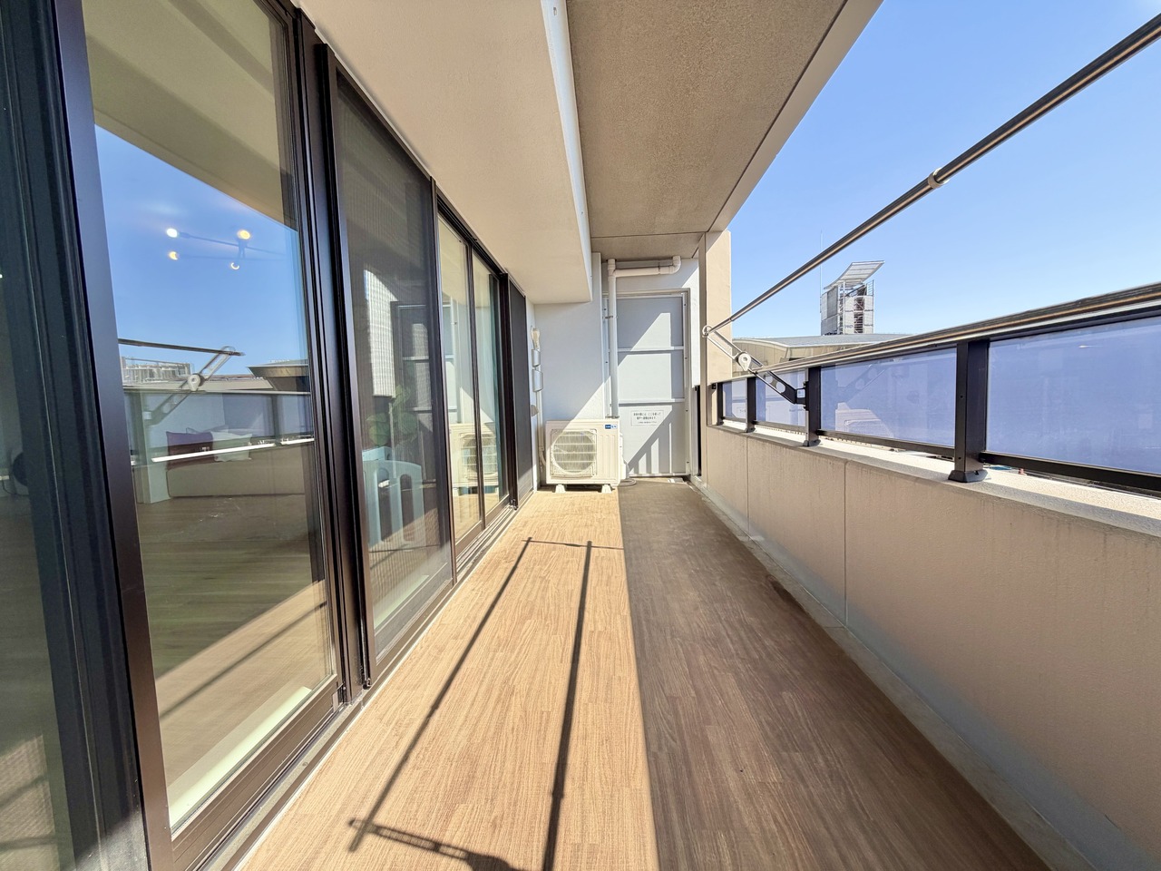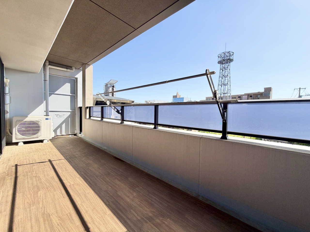 13.60平米のバルコニーは、広々としております。南向きのワイドバルコニーとなりますので、お洗濯は比較的安心出来そうです。また、雨の際には浴室乾燥機もございますので