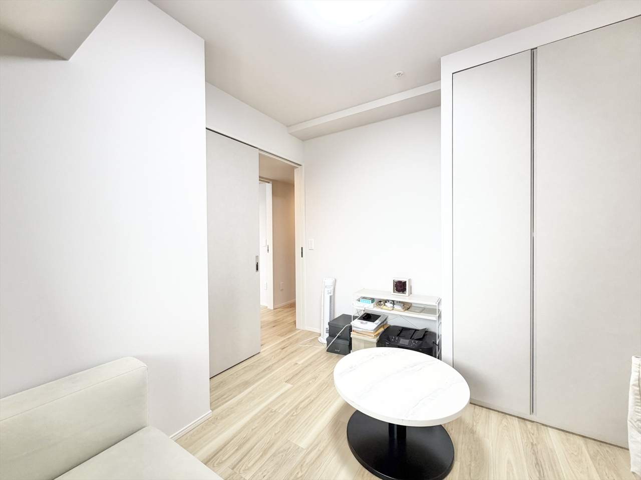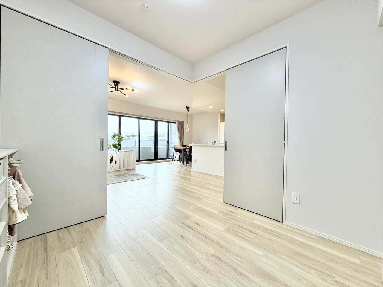 LDK横の4.5帖の洋室になります。間仕切りもございますので、季節や来客に応じて区切ることが可能です。また、ウォークインクローゼットも完備しておりますので、お部屋も広々とご利用いただけそうです。