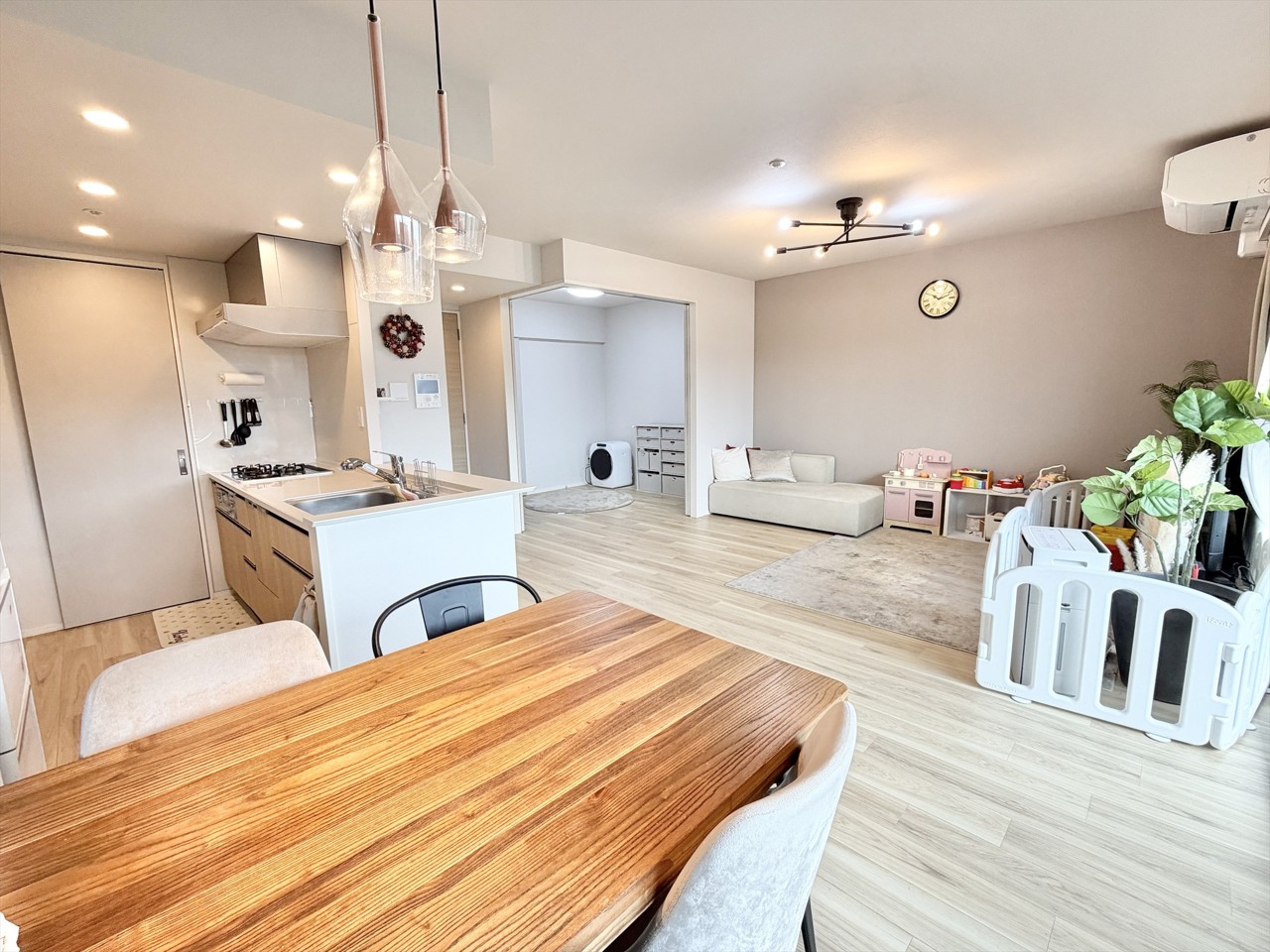 LDKは広々「19.8帖」ございます。リビング横には、「4.5帖」の洋室もございますので開放感のある間取りです。2023年築なこともあり、室内大変お綺麗に使われております。