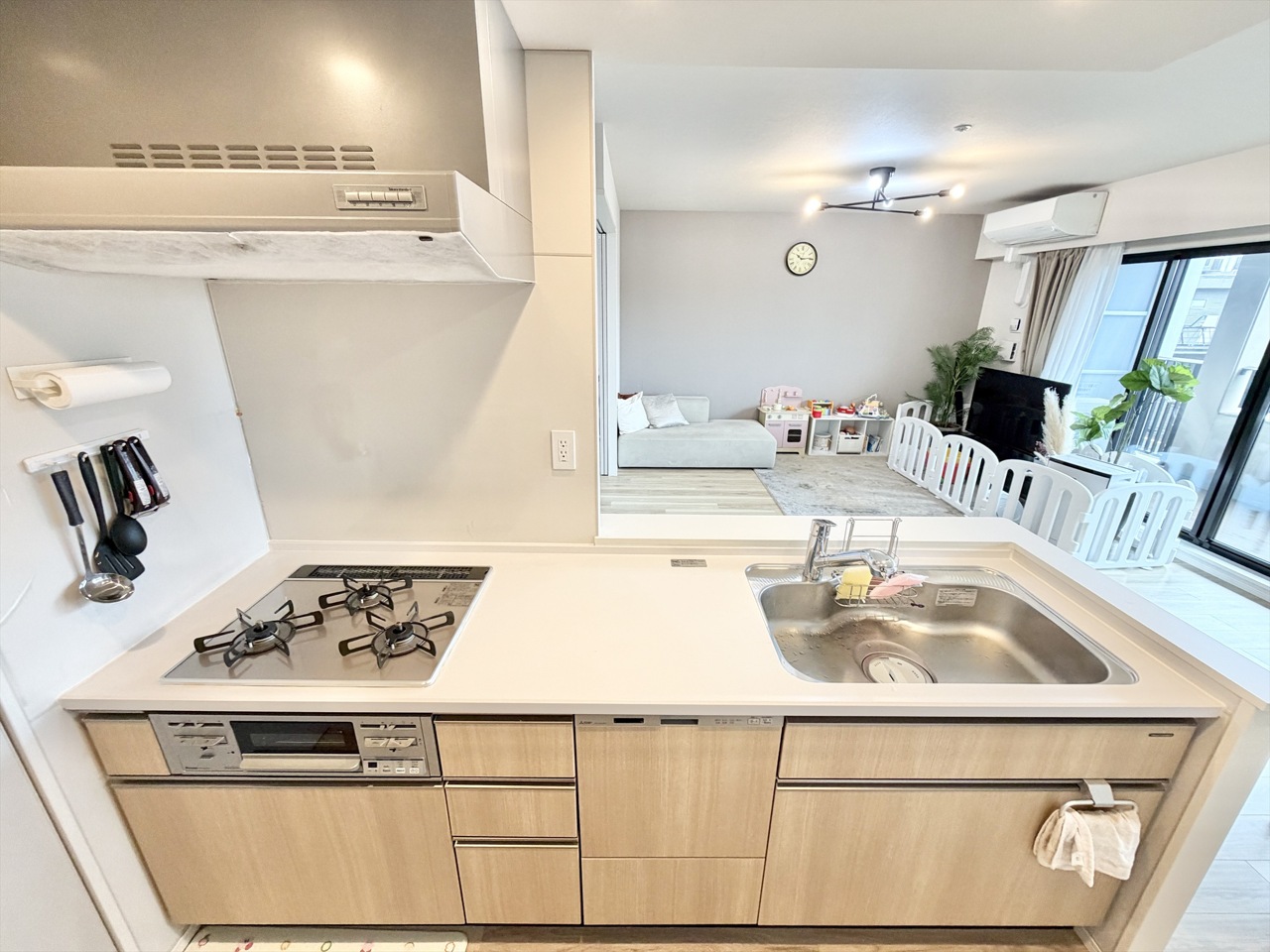 食洗器・ディスポーザー・3口コンロ・魚焼きグリルと充実した設備を完備しております。調理スペースもしっかりと確保されておりますので、お料理の幅も広がってきそうです。