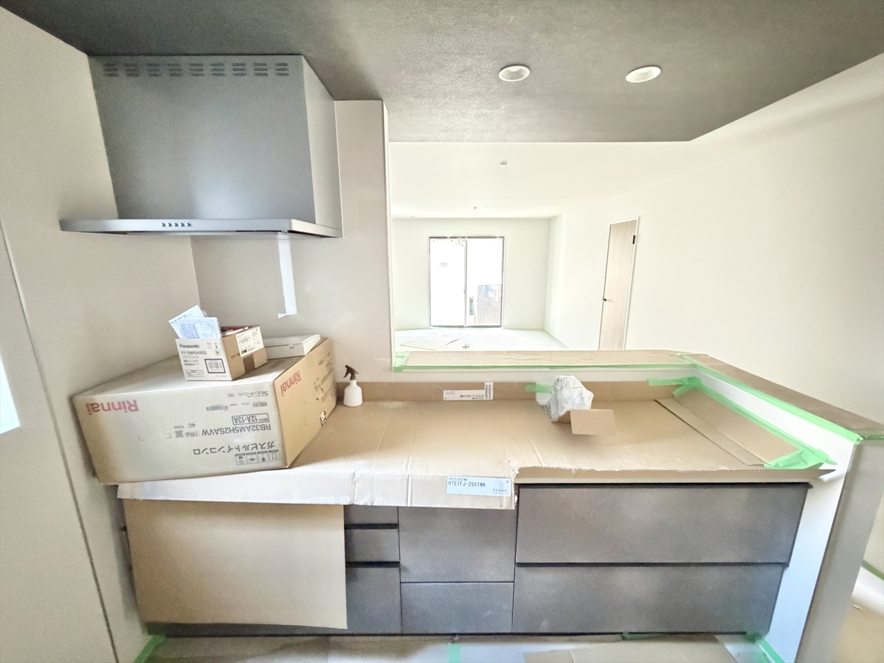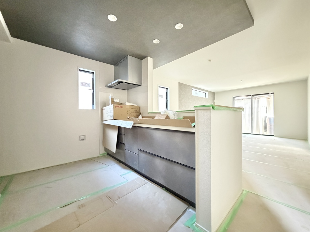 1号棟 対面式キッチンは、家族の会話が増える素敵な間取りです。こちらのキッチンでおいしい料理とご一緒に素敵な思い出をどうぞ。