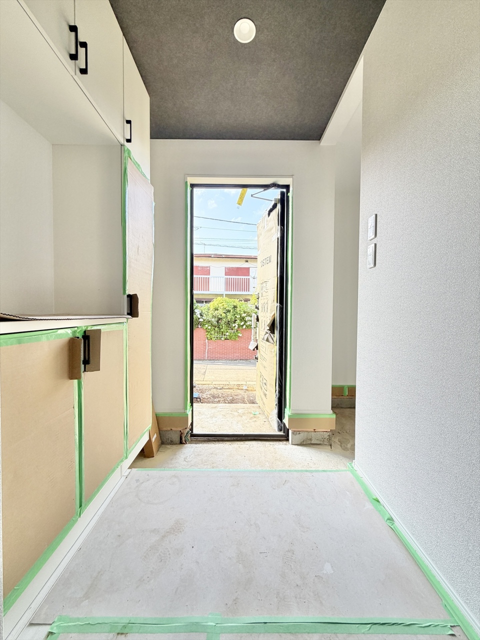 1号棟 今日も元気よくいってらっしゃい。マイホームライフが楽しみです。玄関収納もしっかりとございますのでご安心ください。