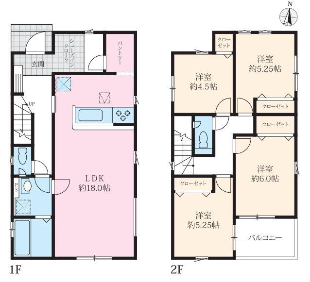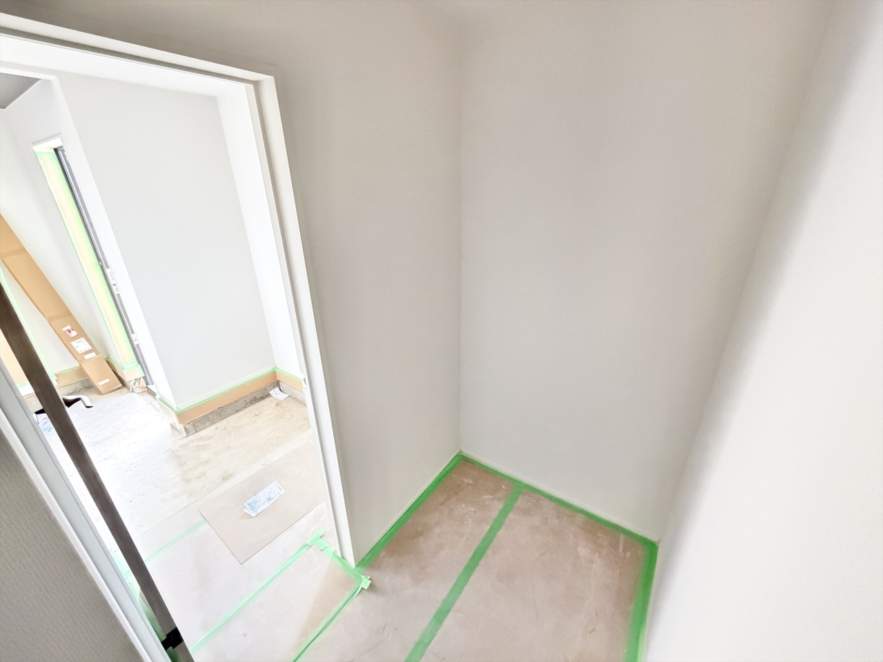 1号棟 玄関から直接アクセスの出来るパントリ-は、お買い物帰りに重宝します。シューズインクローゼットもございますので、靴やアウトドア用品が多い方も安心出来そうです。