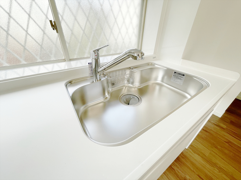 2024年11月のリフォームでキッチンが新品に交換されています。ホワイト調で清潔感のあるキッチンです◎