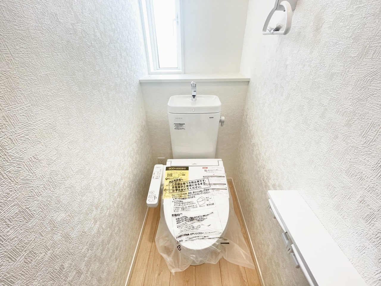 洗浄機能・脱臭機能を完備、開口窓も設け清潔な室内にすることが可能です。 また温水洗浄便座は、デリケートな皮膚などを清潔に保つことができ、便座も温度調節ができるので、寒い冬も快適にトイレに座ることが可能。