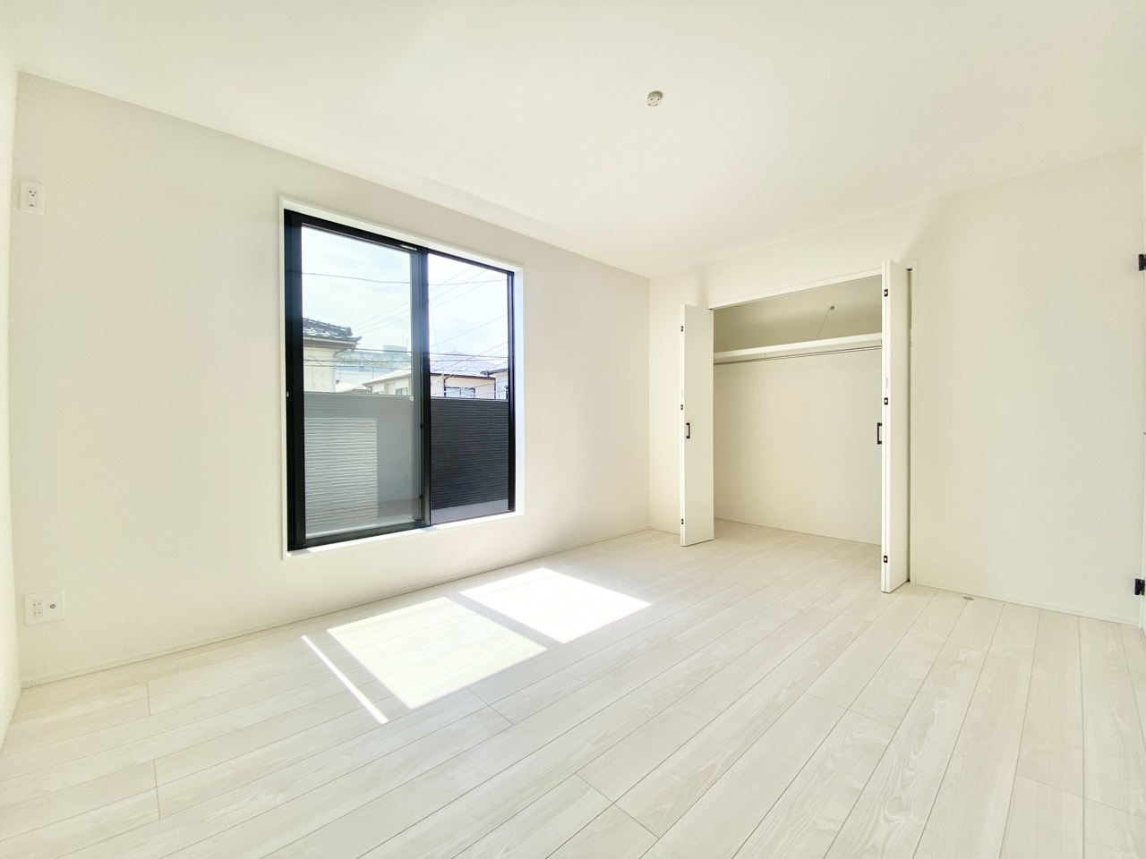 2階約6帖の洋室。全室に豊富に収納可能なクローゼットがあります。こちらも2面採光で陽当たり良好です。