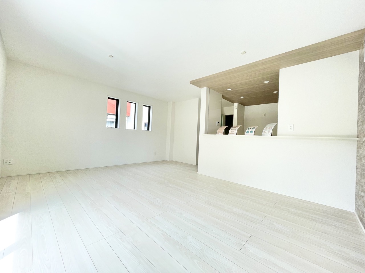 三面採光の17.75帖のLDKは開放感のある広々としたリビング。南西向きで陽当たり良好です。