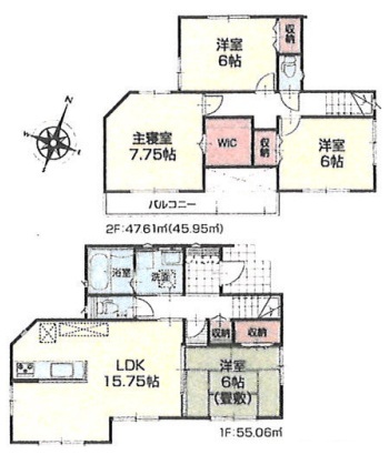 | 間取 | 4LDK (和室6帖、LDK15.7帖、洋室7.7帖、洋室6帖、洋室6帖) | ||