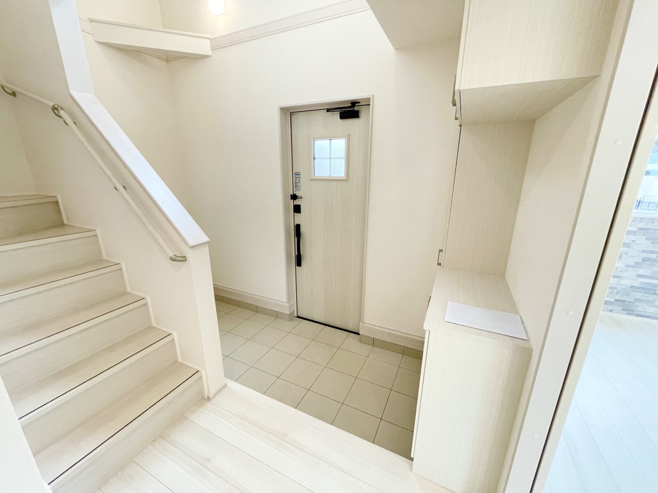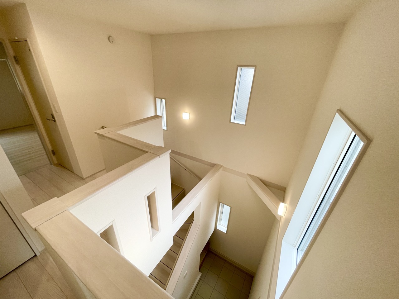 吹抜けからの採光で明るく開放的な玄関