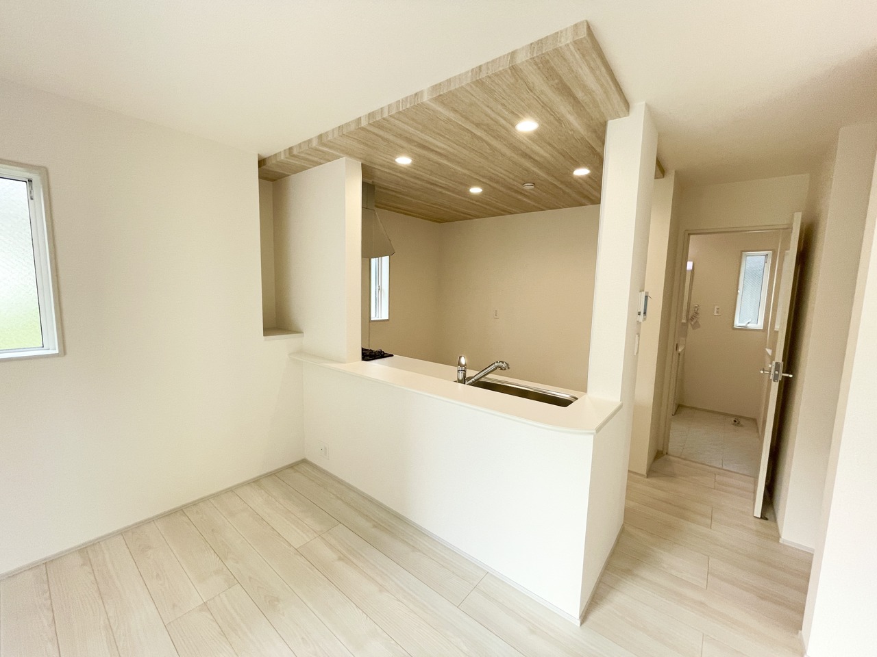 南側からの日差しが入るため日中は明るい空間に