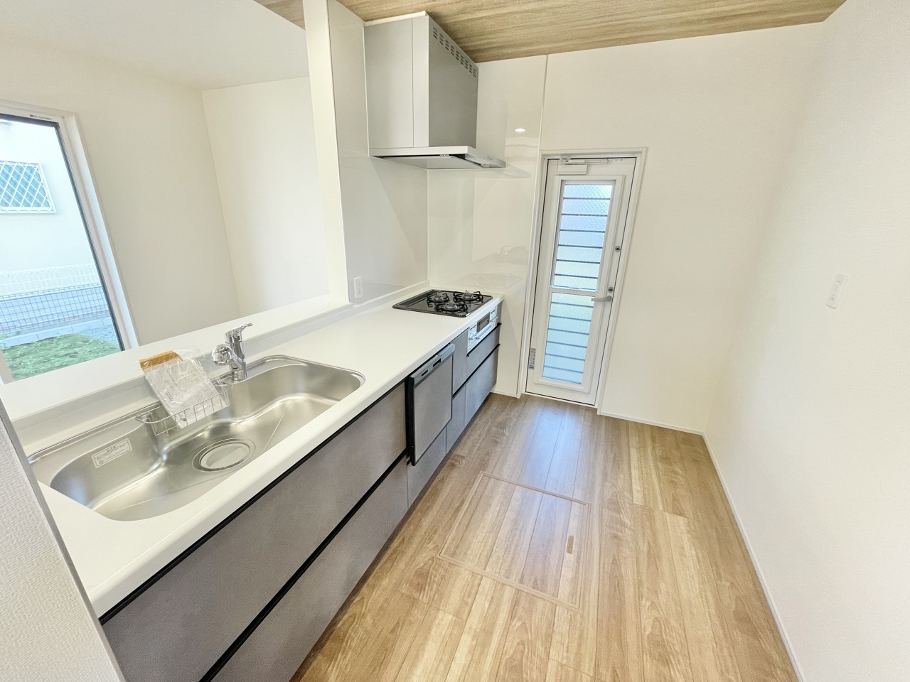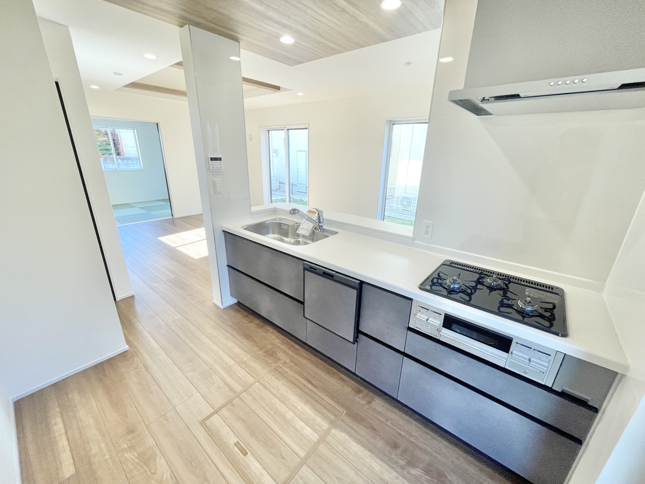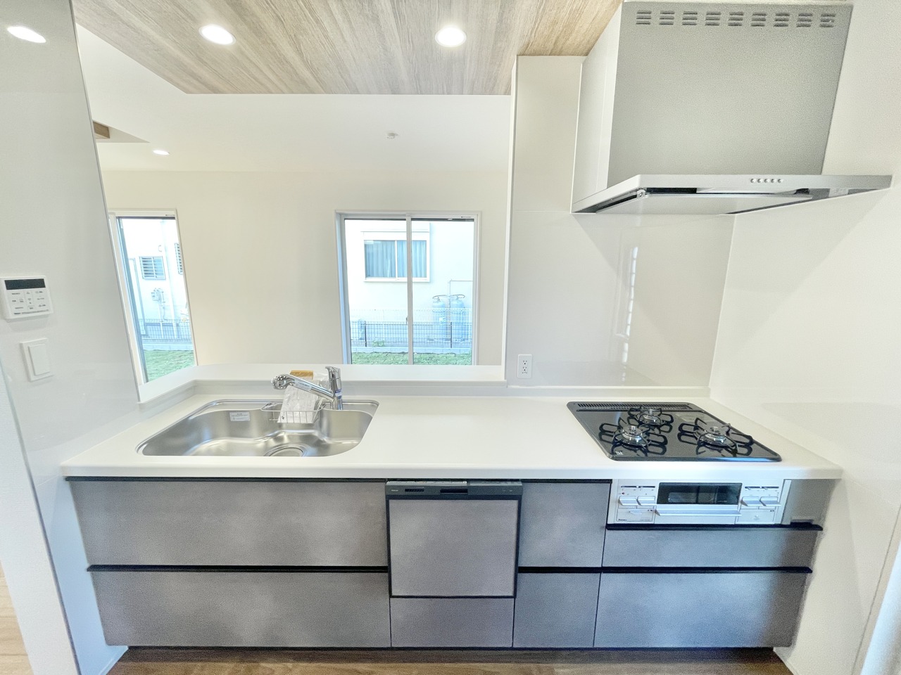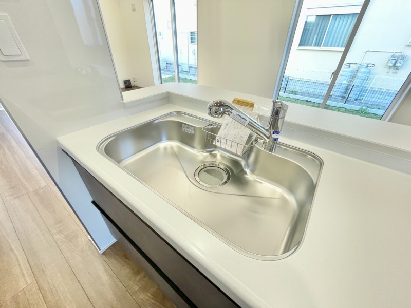 大きな窓から明るい光が差し込む、家族みんなが使いやすい対面キッチン♪毎日の料理がもっと楽しくなる、使い勝手バツグンの設備が揃っています。開放感あるLDKとつながる心地よい空間で、新しい暮らしを始めませんか。