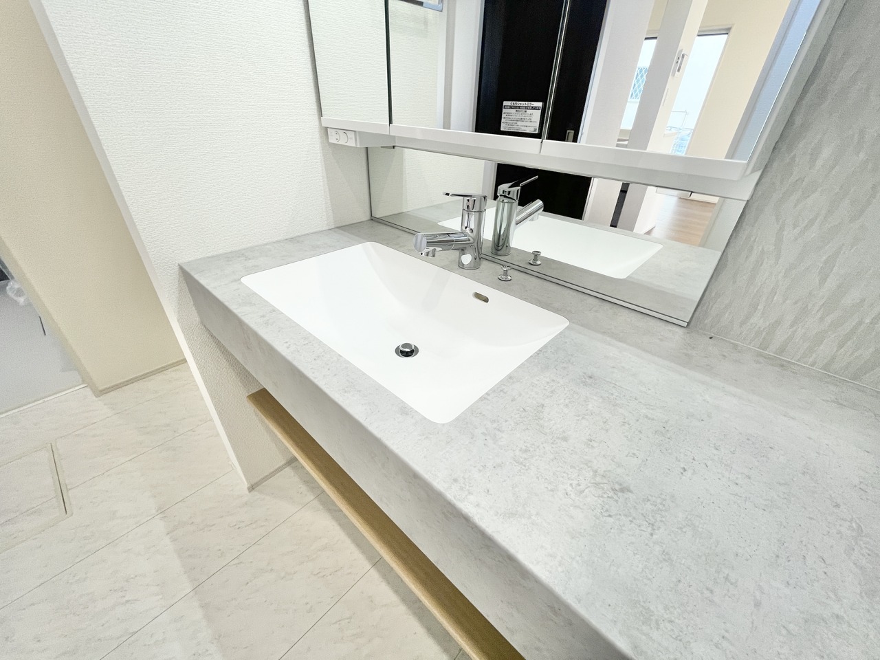朝の支度がもっとスムーズに♪ ゆったり使える大きめ洗面台で、毎日がちょっと心地よくなるお家です。暮らしを優しく支える快適空間です。