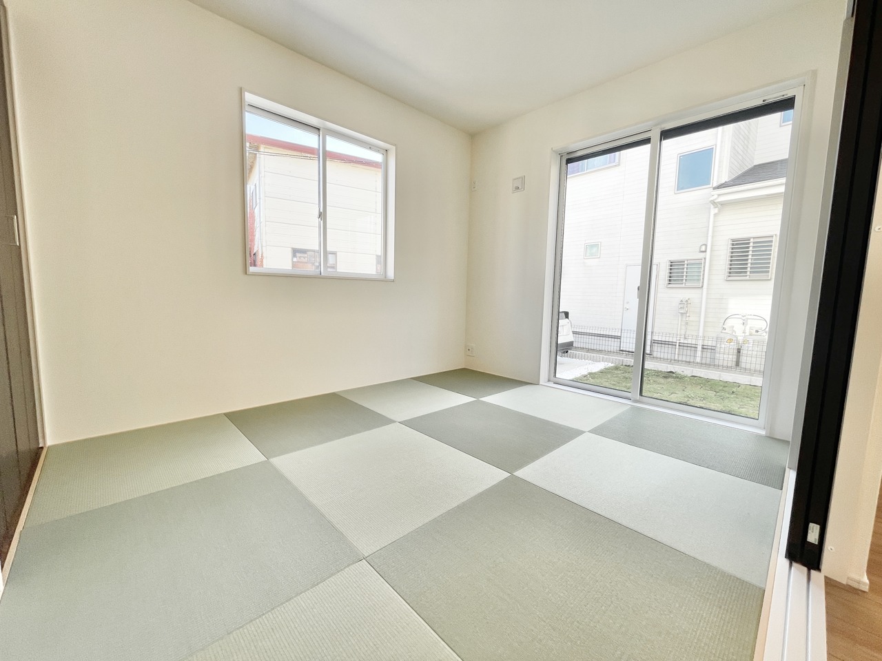 家族の“ただいま”が心地よく響く、陽当たり良好の明るい住まい。広い駐車スペースと芝生のお庭で、日々の暮らしがもっと楽しくなる家です。