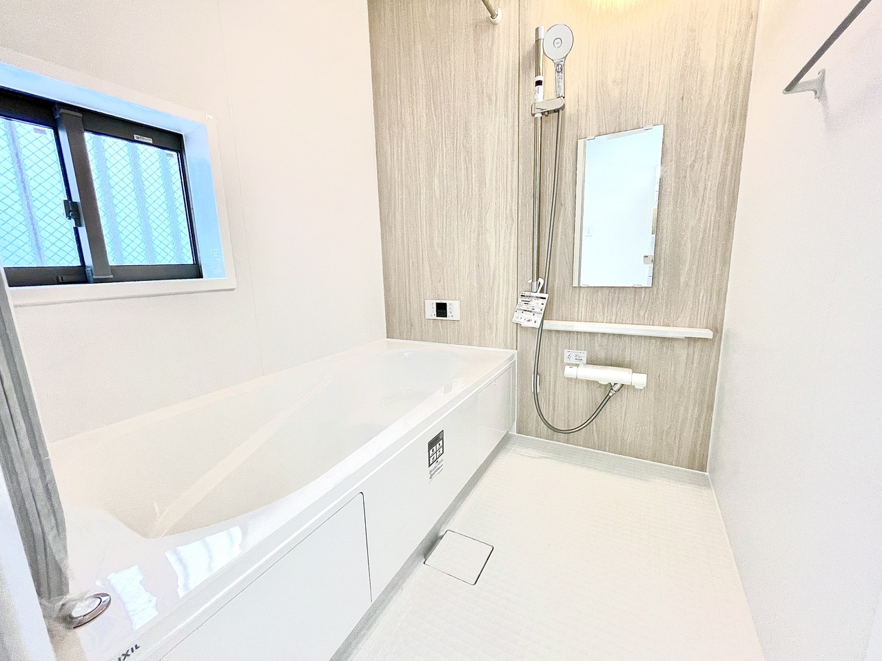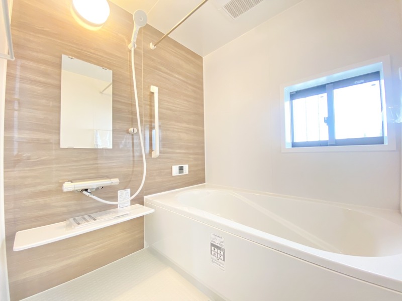 ■浴室乾燥機付きユニットバス(追炊き付き) ユニットバスは全てが浴室のために設計されているため、掃除のしやすさやカビの生えにくさ汚れにくさに特化しています。 素材は汚れが付きにくいものが使用され、お手入れが最小限に抑えられる浴室となっております。