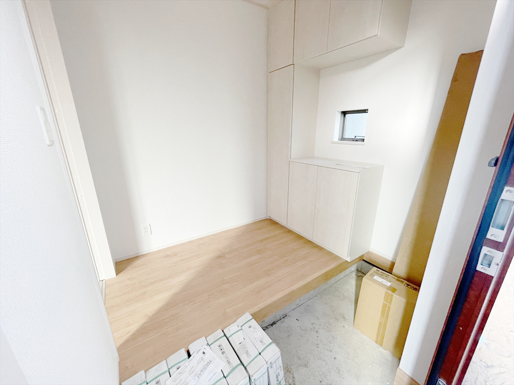■玄関 ゆとりのある玄関です。 シューズの収納もでき、カウンター台もあるので、飾り棚に使用したりもできます。